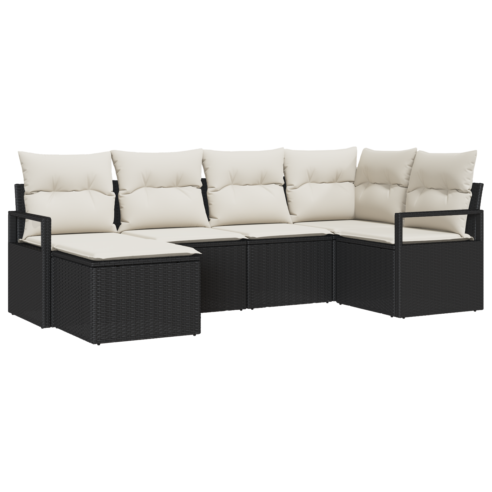 Set de canapea de grădină cu perne, 6 piese, Negru, Ratan polimeric, Canapea de grădină cu 2 locuri și perne, Negru, Ratan polimeric GartenMobel Dekor