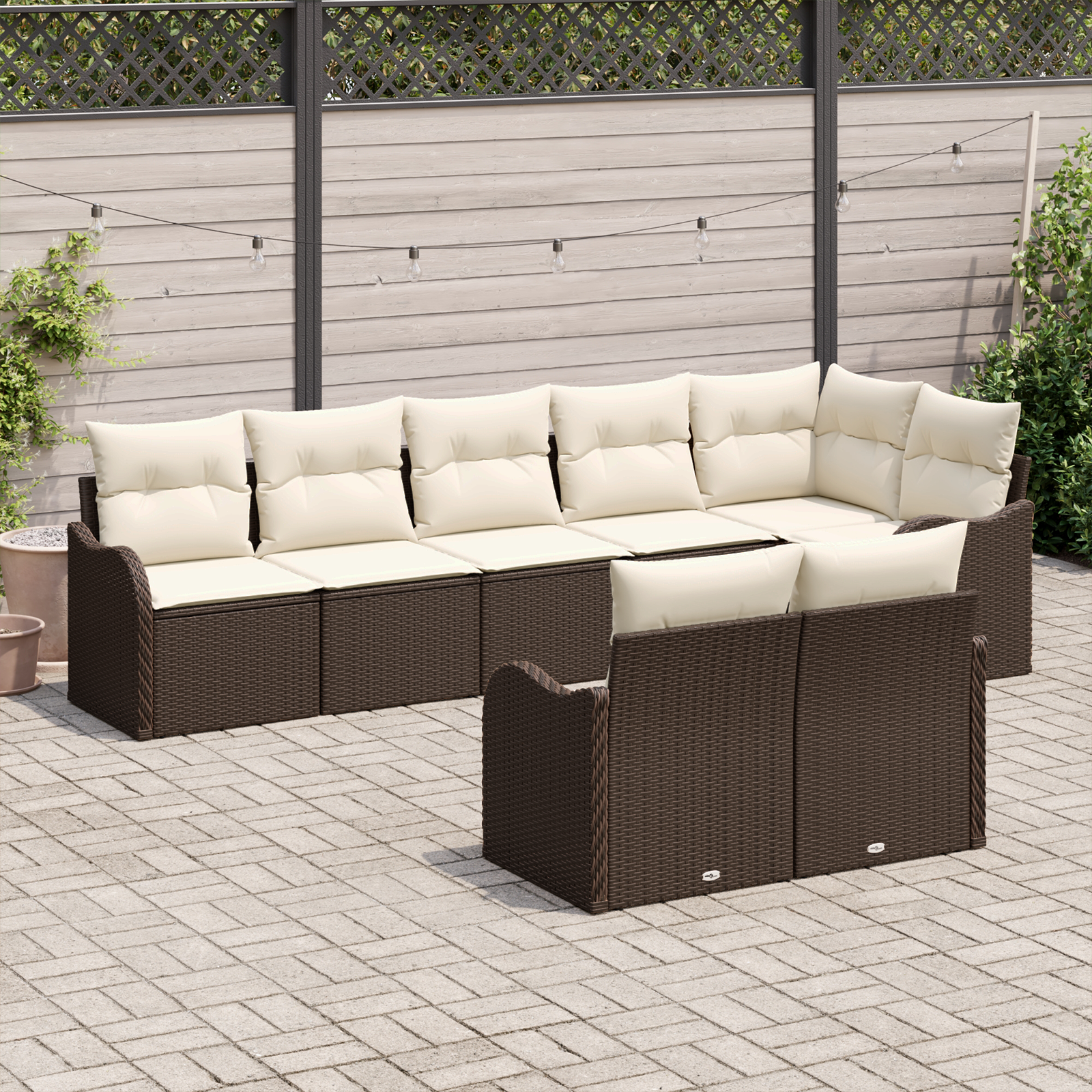 Set de canapea de grădină cu perne, 8 piese, maro ratan poli, Canapea de grădină cu 2 locuri cu spațiu de depozitare și perne, maro ratan poli GartenMobel Dekor