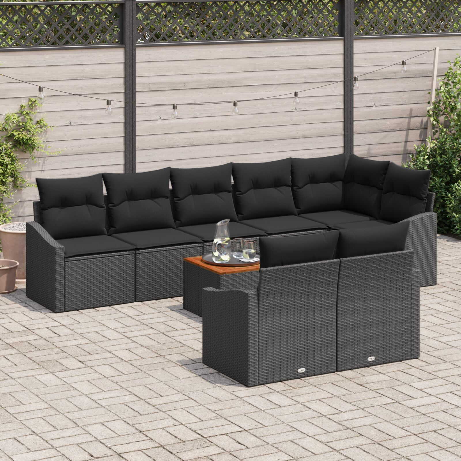 Setul ăsta de canapea de grădină cu 9 piese și perne e o alegere faină pentru spațiile exterioare, cum ar fi balcoanele și terasele. Îmbină utilitatea cu un design stylish. Cu un aranjament spacious și perne confortabile, e perfect pentru întâlniri sociale, brunch-uri sau discuții de seară, transformându-ți zona exterioară în locul ideal pentru relaxare.
