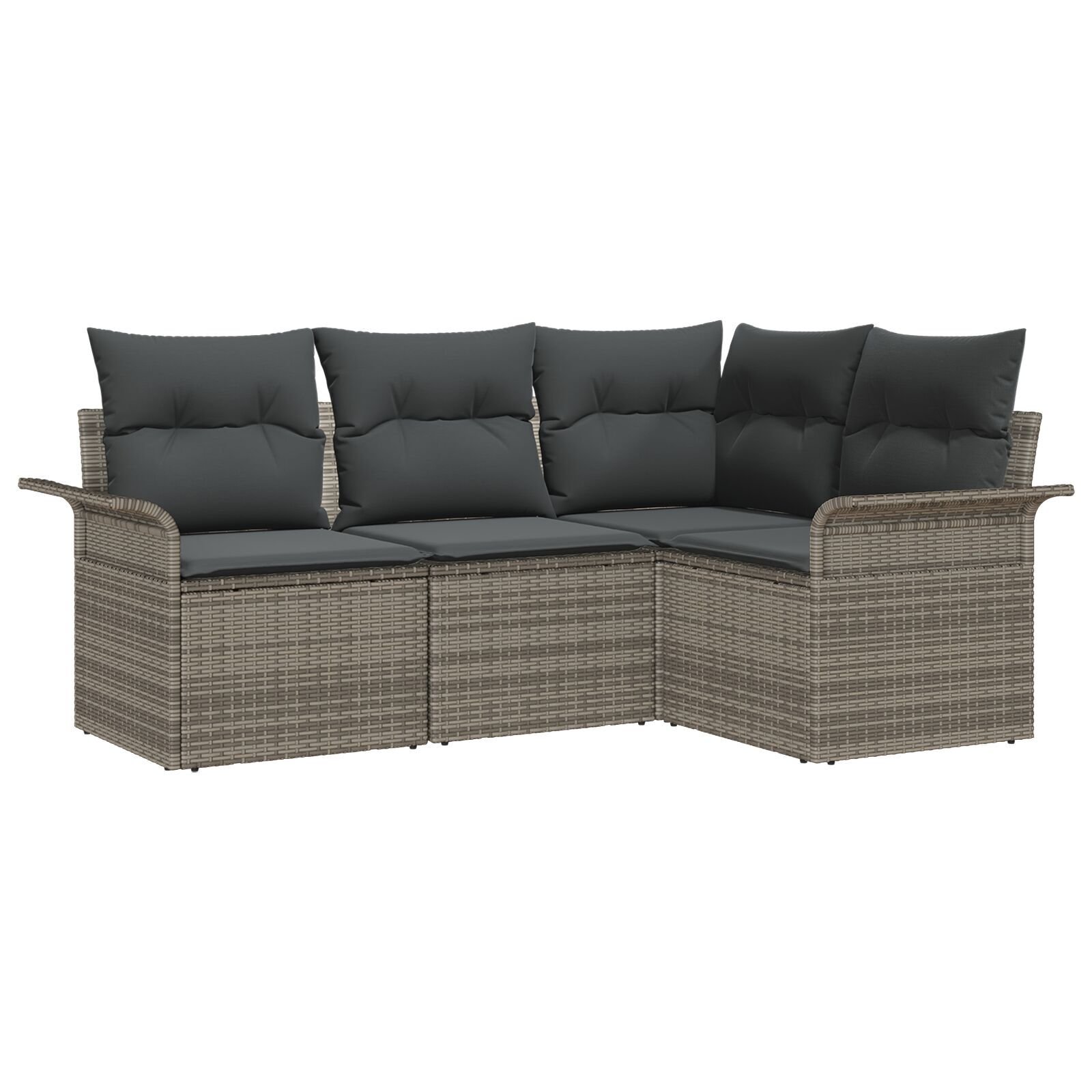 Setul de canapea de grădină îmbină stilul cu practicitatea, oferind un loc confortabil pentru relaxare sau distracție în aer liber. Cu un finisaj gri din ratan poli și perne negre moi, se potrivește bine în diverse spații exterioare, putând găzdui până la cinci invitați.