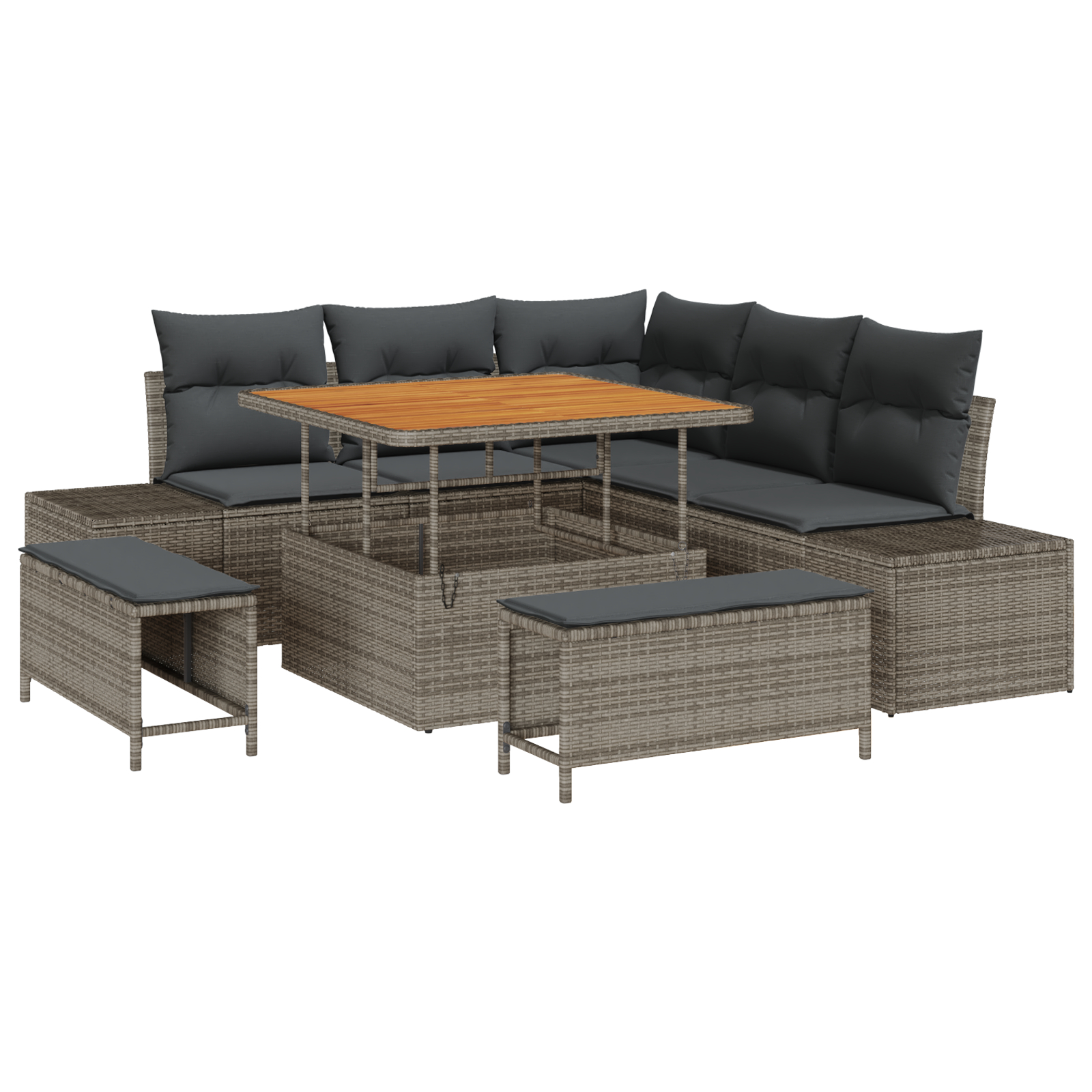 Set de canapea de grădină cu perne gri din ratan poli, Canapea de grădină cu 2 locuri și depozitare & perne gri din ratan poli, Set de dining de grădină cu 3 piese și perne gri din ratan poli GartenMobel Dekor