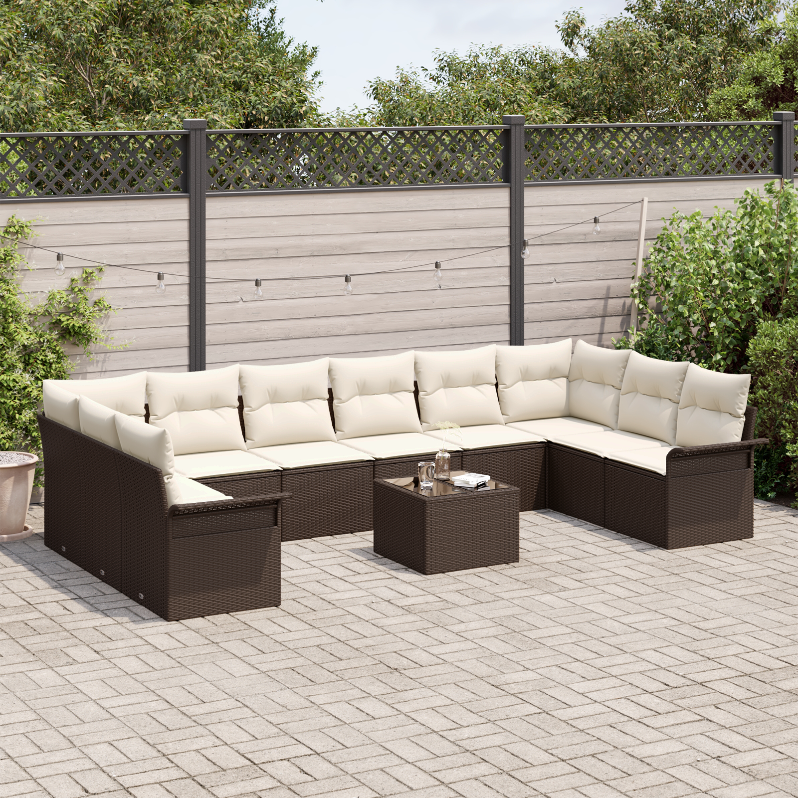 Această canapea de exterior cu patru locuri e tot ce îți trebuie pentru un loc confortabil în grădină sau pe balcon. Cu un design modern și elegant, are un cadru din poliratan maro și perne crem care se potrivesc perfect. E ideală pentru întâlniri de familie sau pentru a te relaxa singur.