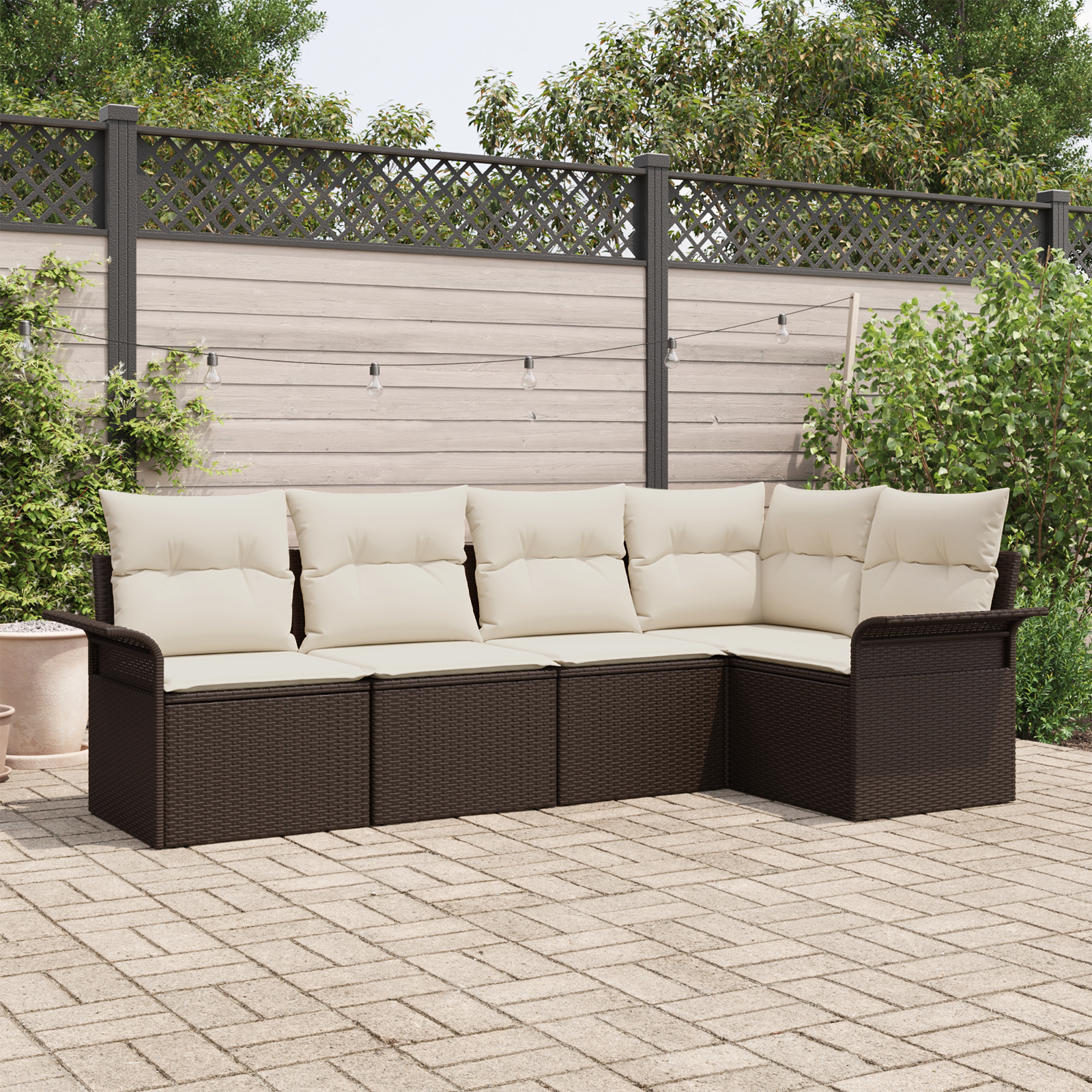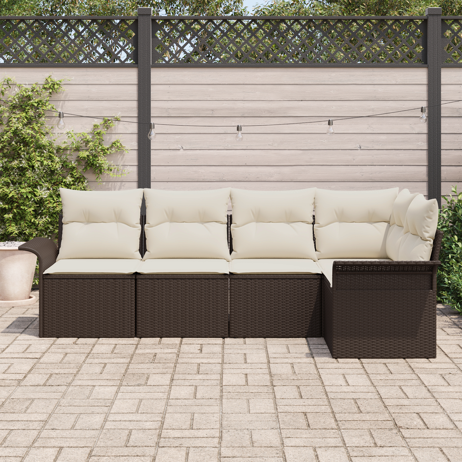Acest set chic de canapele de grădină este perfect pentru relaxare în aer liber, făcându-l locul ideal pentru odihnă sau întâlniri sociale. Cu stilul său elegant în maro și crem, adaugă un plus de stil grădinii, balconului sau terasei tale, păstrându-te confortabil.