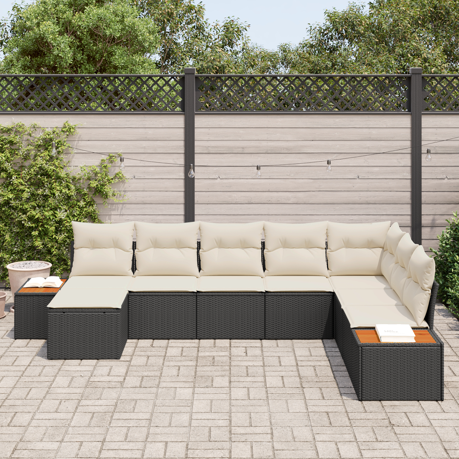 Set de Canapea de Grădină cu Perne Negru Ratan Poli Acacia, Canapea de Grădină 2-Persoane cu Spațiu de Depozitare & Perne Negru Ratan Poli GartenMobel Dekor