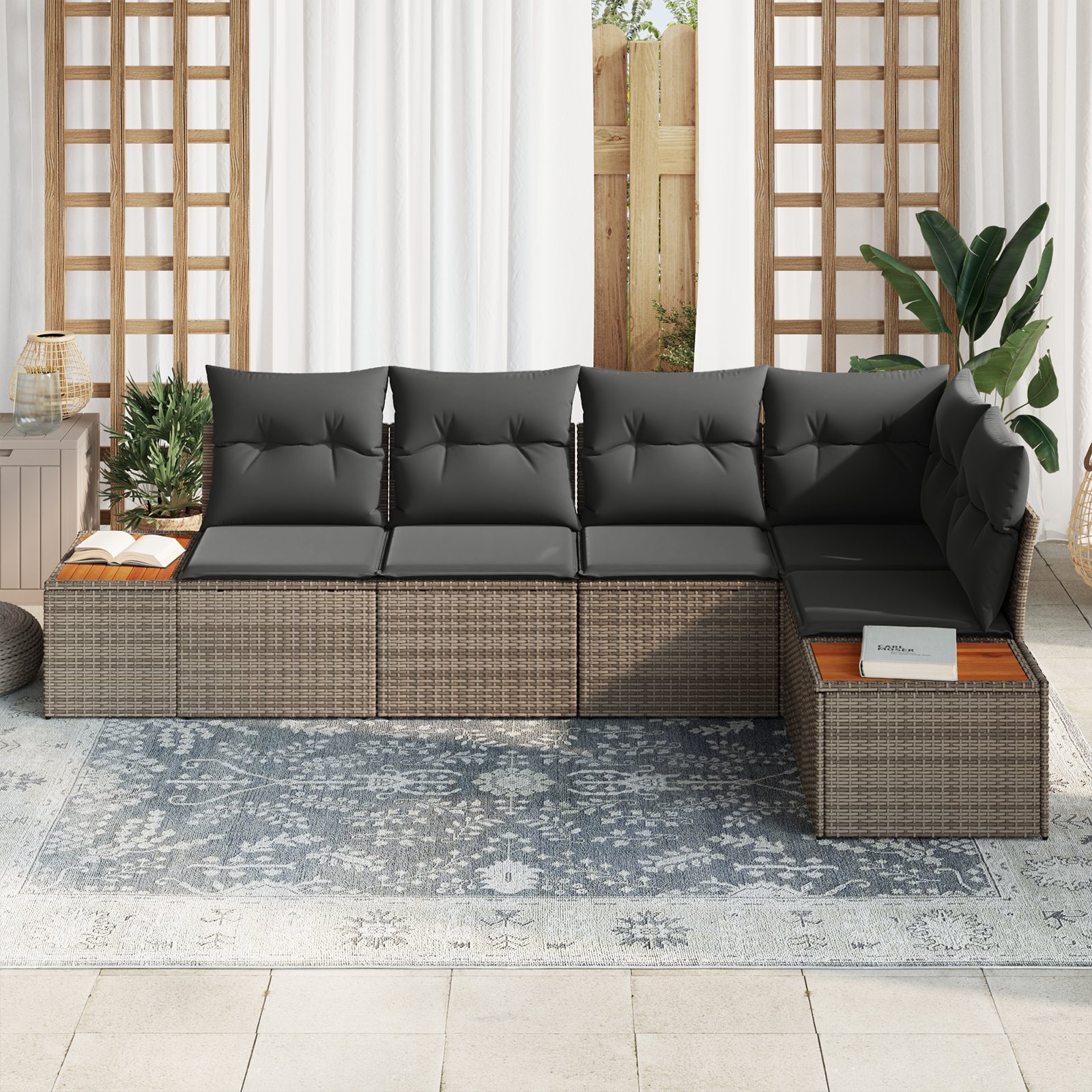 Set de Canapea de Grădină cu Pernuțe Gri din Ratan Poli Acacia, Canapea de Grădină cu Spațiu de Păstrare & Pernuțe Gri din Ratan Poli GartenMobel Dekor