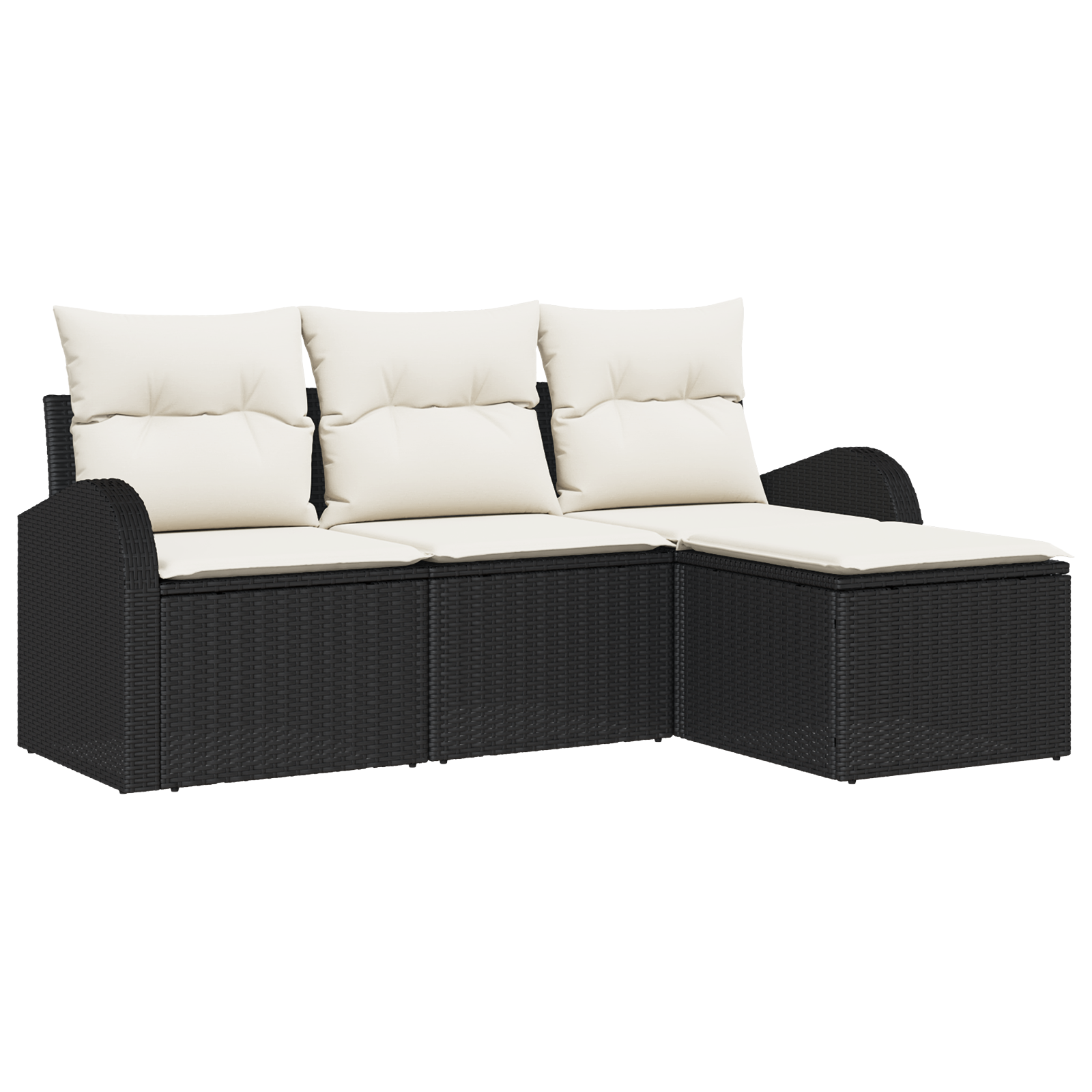 Set de canapea de grădină cu pernuțe Negru Ratan Poli GartenMobel Dekor