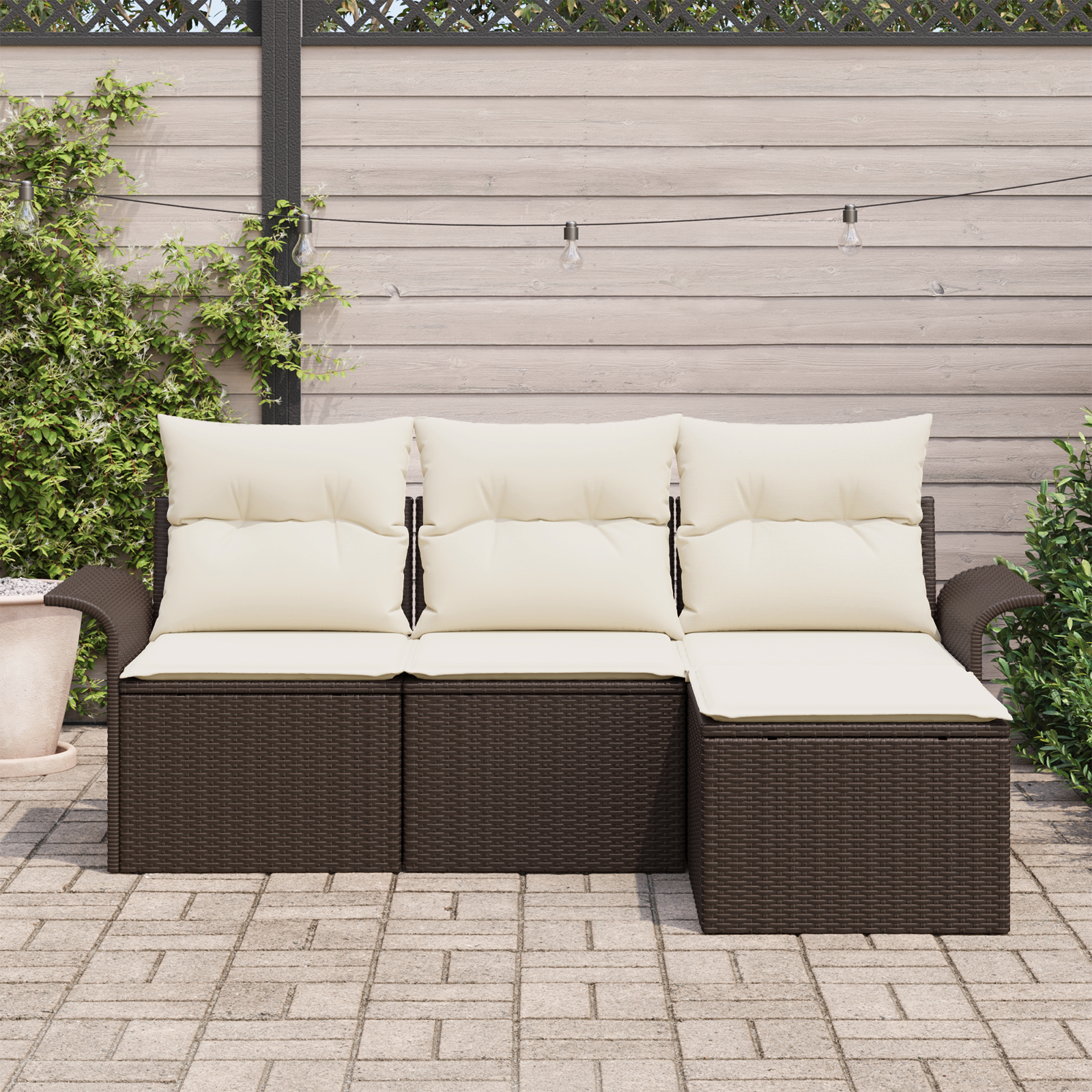 Set de canapea de grădină de 4 piese cu perne maro din ratan poliester GartenMobel Dekor