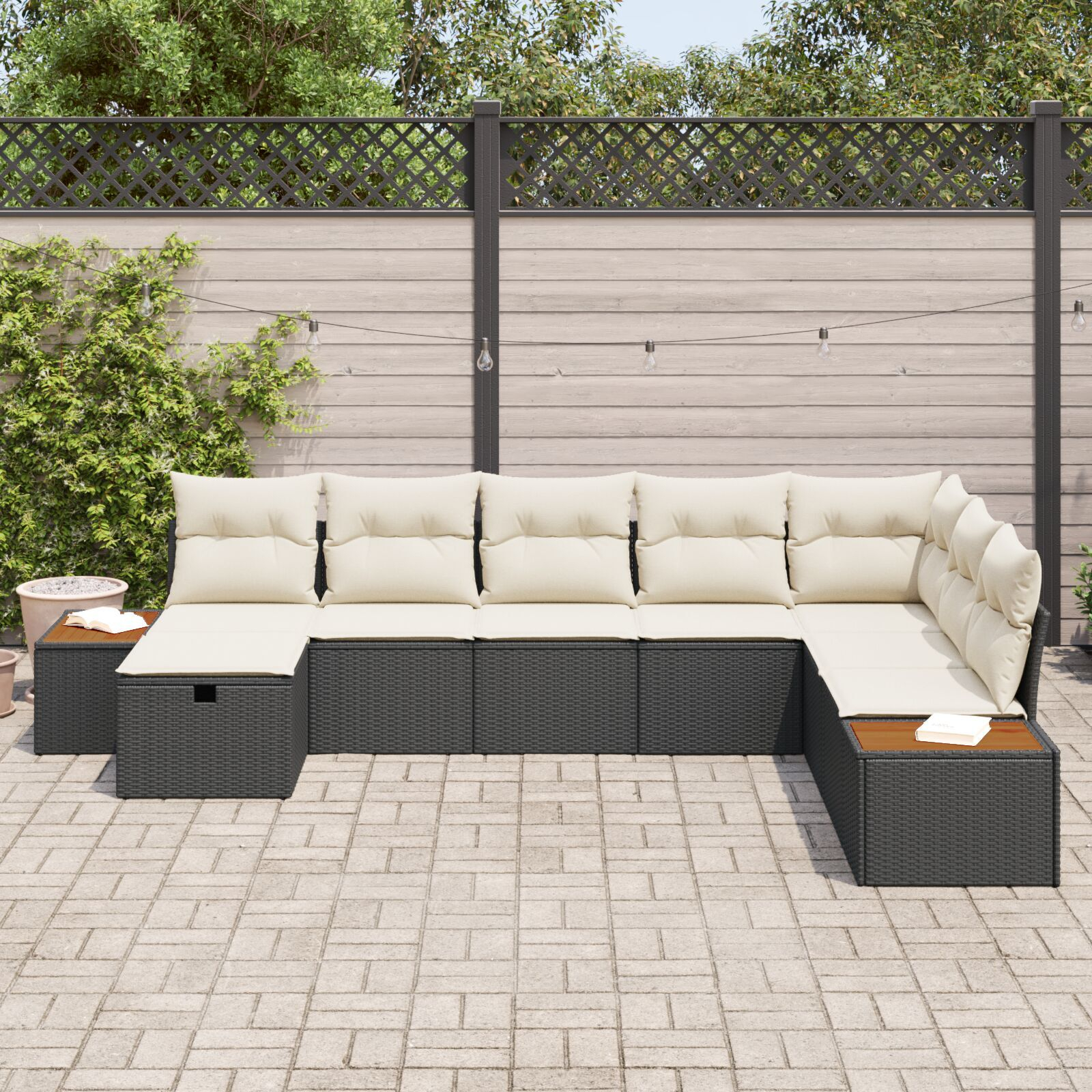 Set de canapea de grădină formato 8 cu perne Ratan Poli Negru GartenMobel Dekor