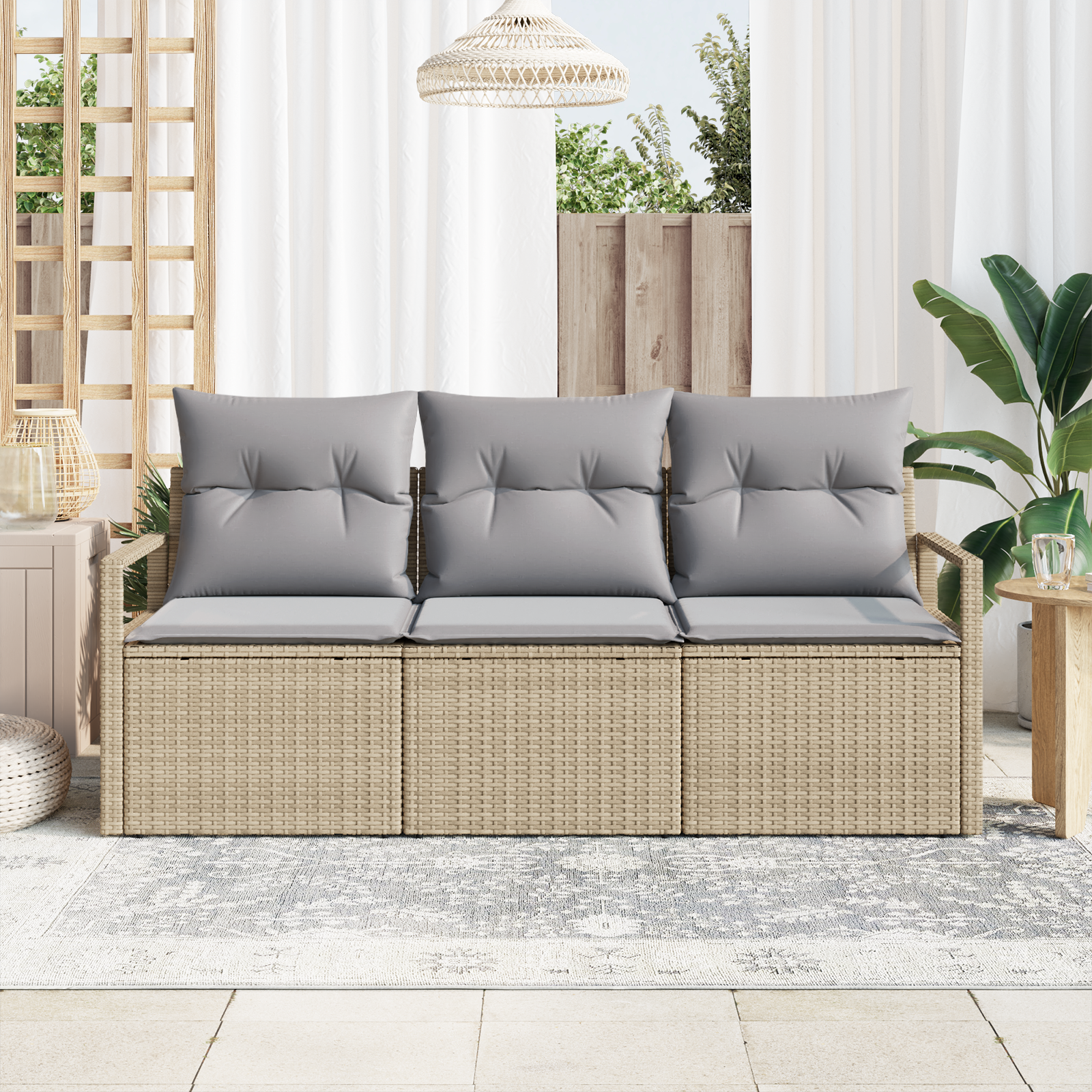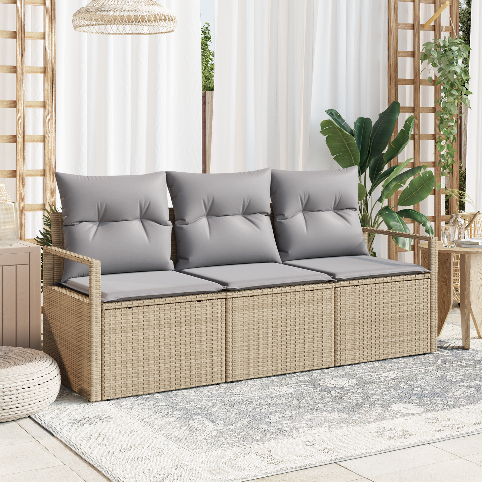 Set de canapea de grădină în 3 piese cu perne Bej Polyratan, Canapea de grădină cu 2 locuri și spațiu de depozitare & perne Bej Polyratan GartenMobel Dekor