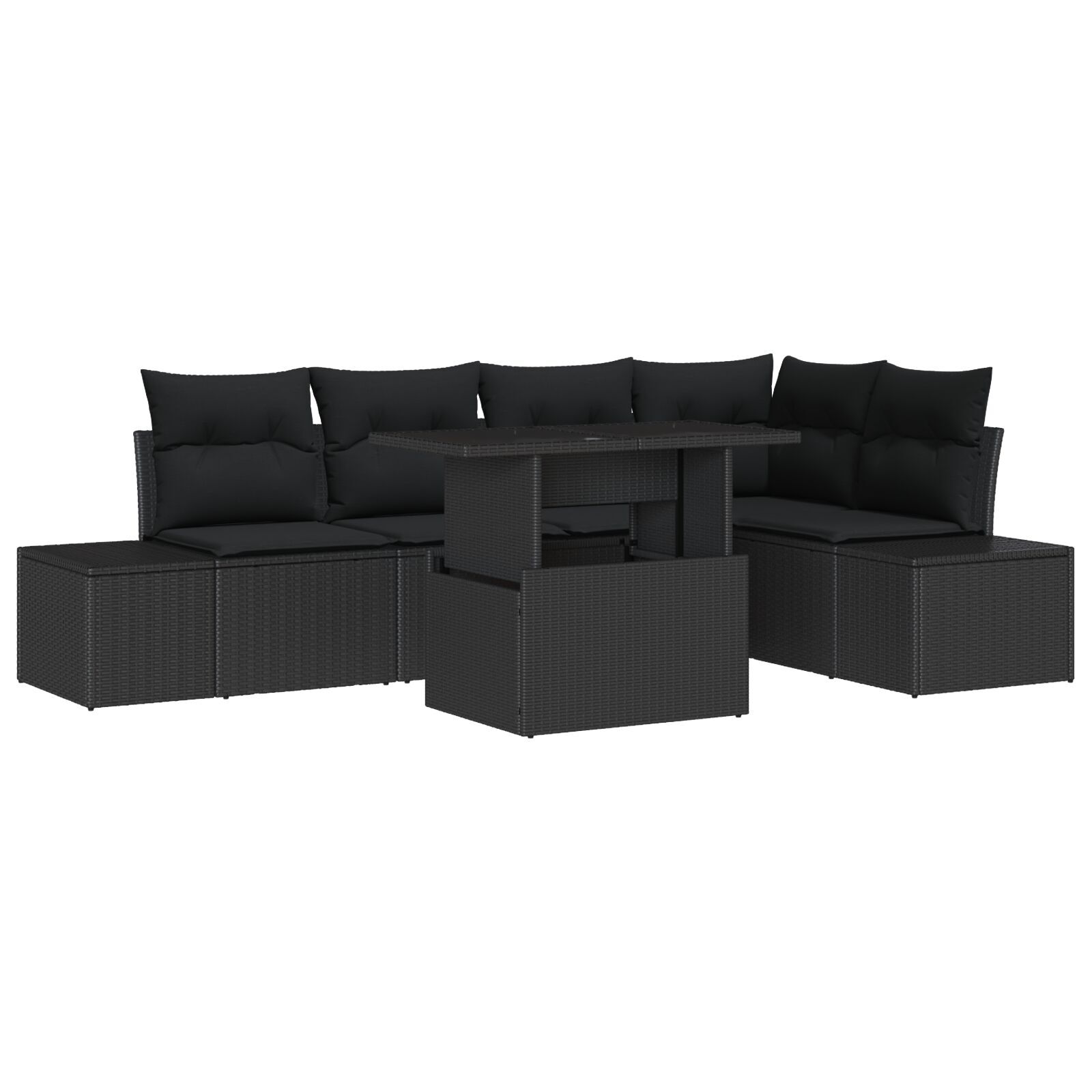 Set de Canapea Grădină 6 Piese cu Perne Negru Ratan Poli GartenMobel Dekor