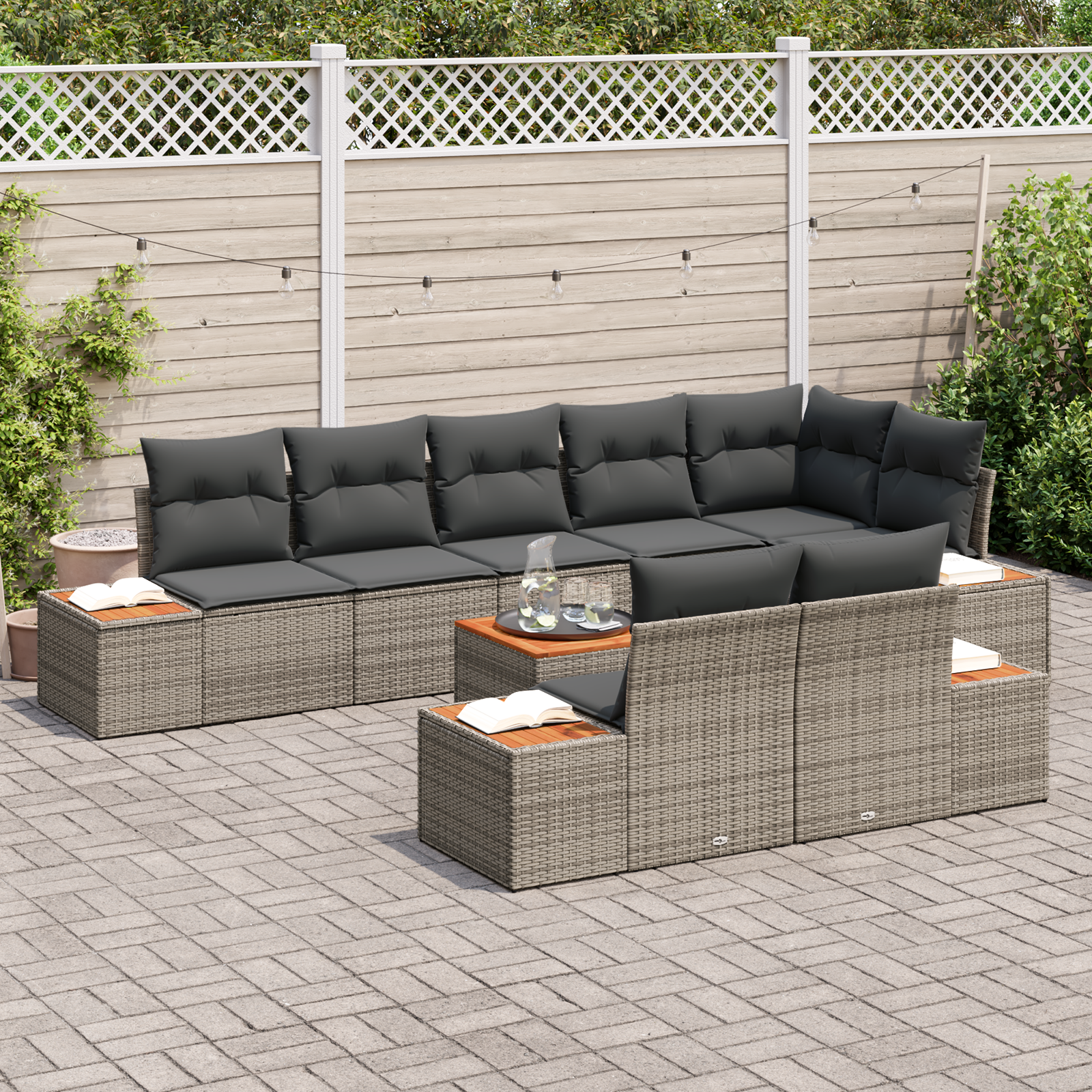 - Setul oferă multe opțiuni de așezare, acomodând confortabil până la 9 persoane, ideal pentru petreceri sau pentru a te relaxa cu cei dragi.