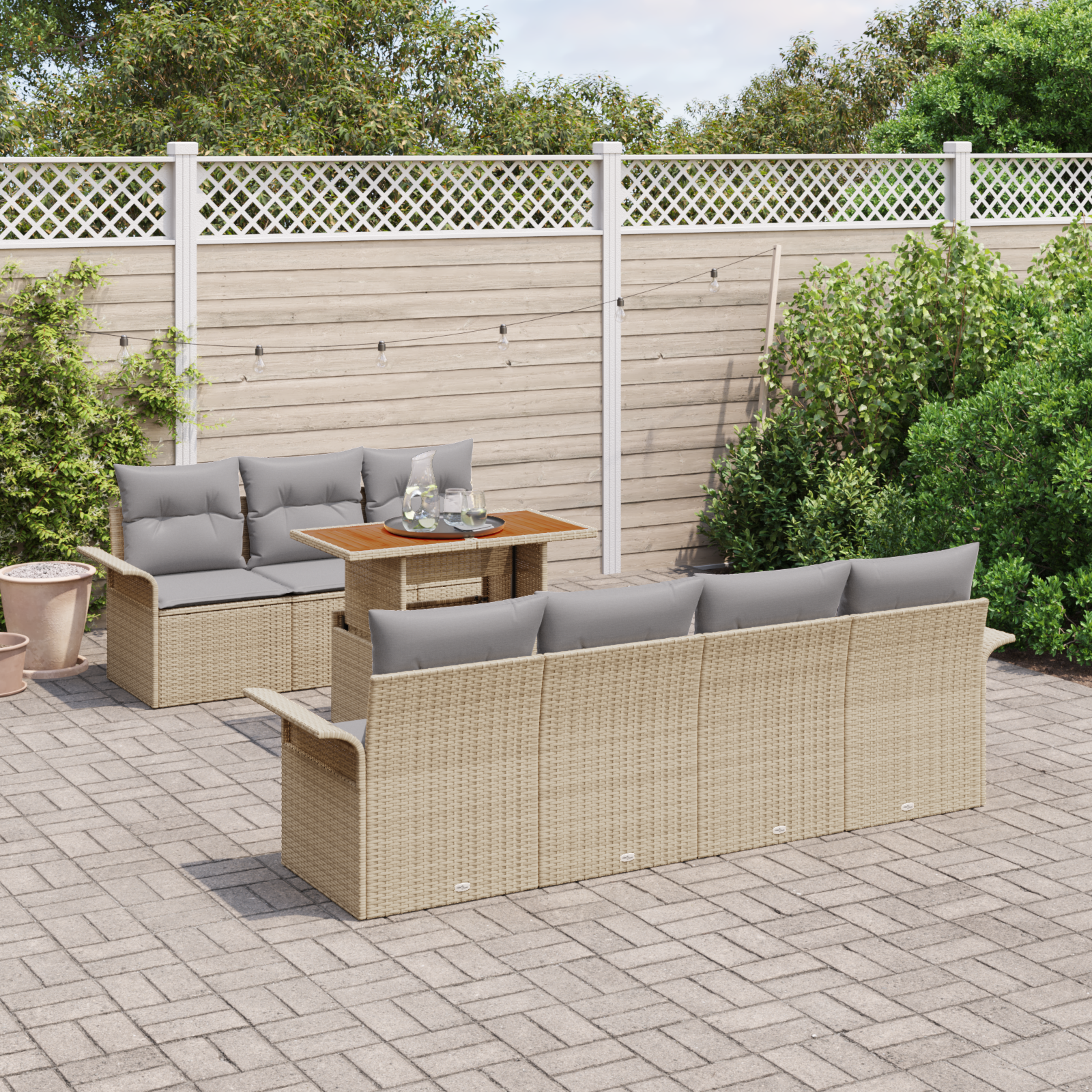 Set de canapea grădină cu 8 piese și perne Bej Ratan Poli Acacia GartenMobel Dekor