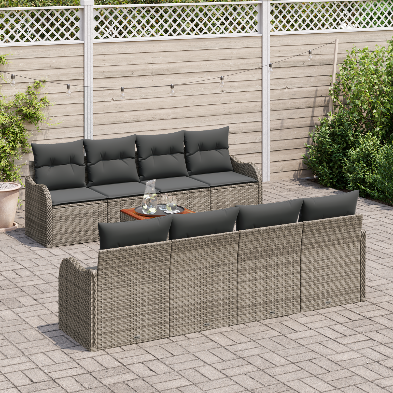 Set de Canapea Grădină cu 9 Piese cu Pernițe Gri Ratan Polimeric Acacia GartenMobel Dekor
