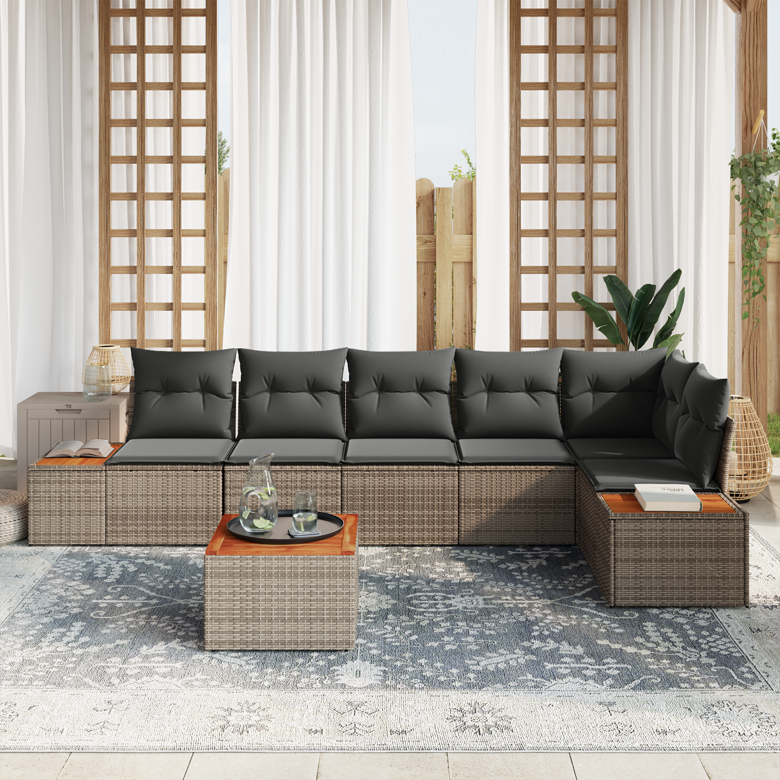 - Materiale Durabile: Fabricat din ratan sintetic rezistent la UV și echipat cu masă din lemn natural, acest set de canapea de grădină e făcut să dureze și să arate bine.
