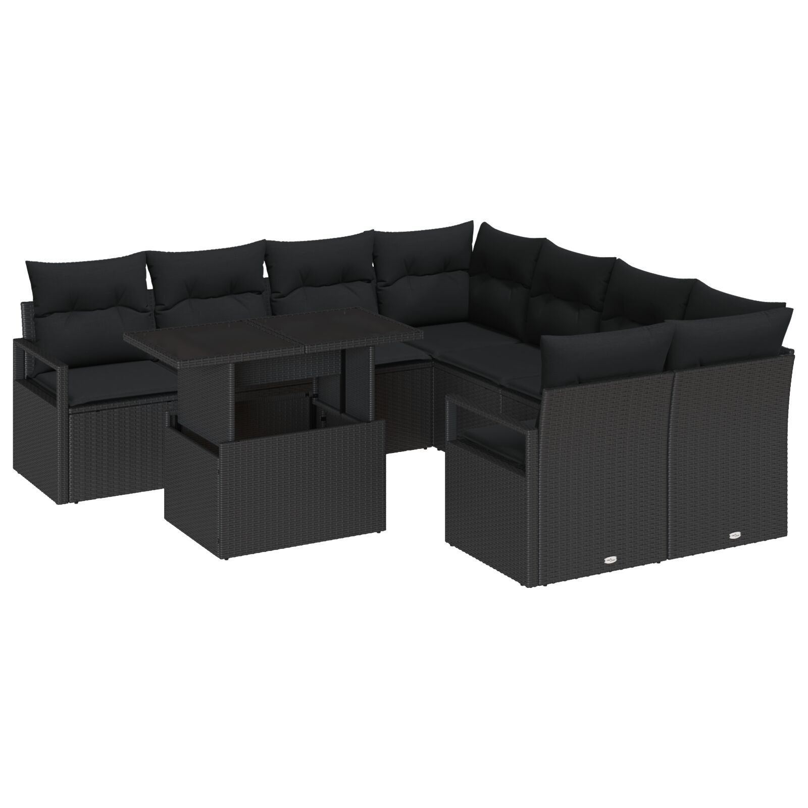 Setul ăsta de canapea pentru grădină redefinește relaxarea afară, îmbinând stilul cu utilitatea pentru viața modernă. Designul său elegant, în nuanțe de negru, se potrivește cu orice vibe de afară, fiind o alegere faină pentru balcoane, terase sau grădini.