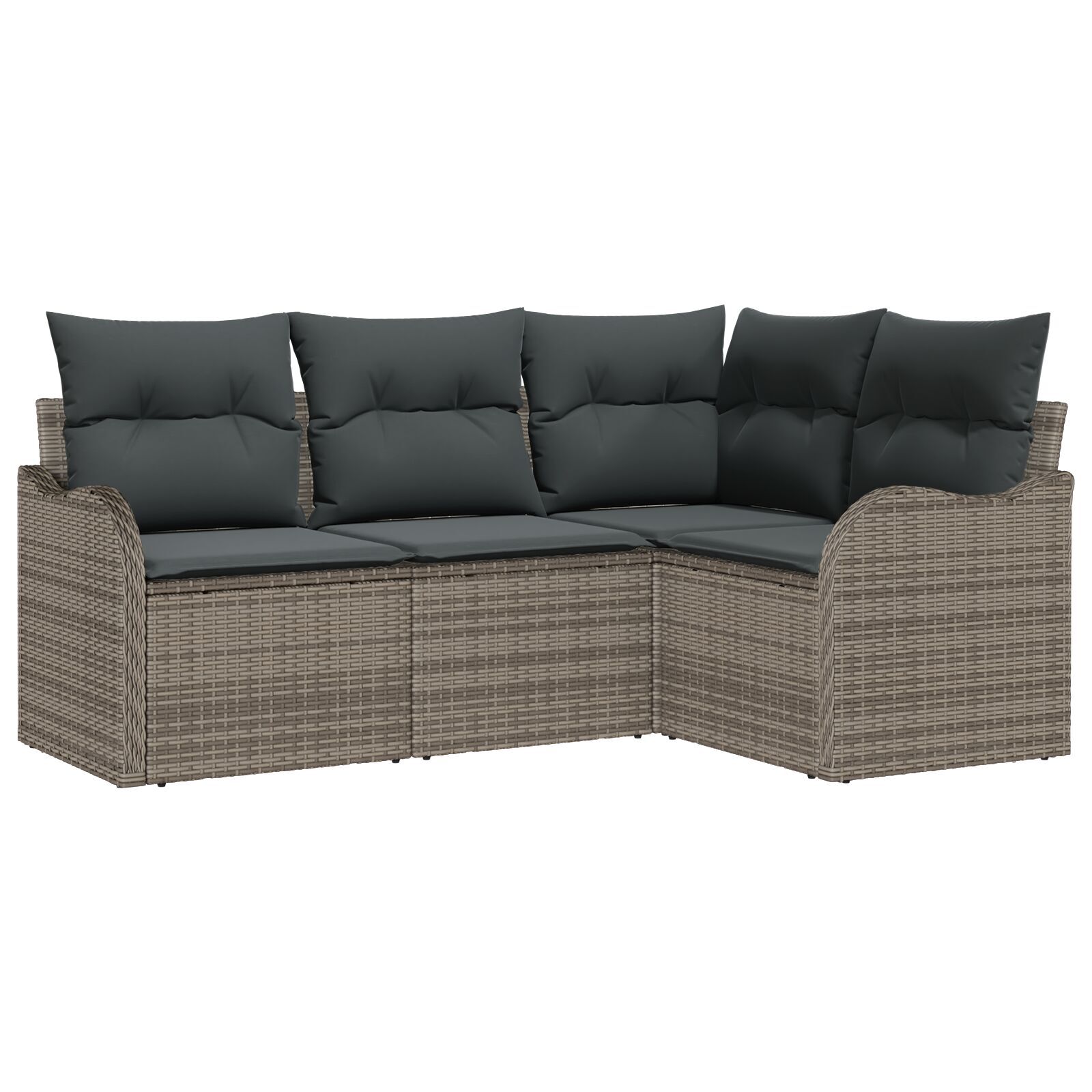 Set de Canapea pentru Grădină 4 Piese cu Perne Gri din Ratan Poli, Canapea de Grădină cu 2 Locuri cu Stocare și Perne Gri din Ratan Poli GartenMobel Dekor
