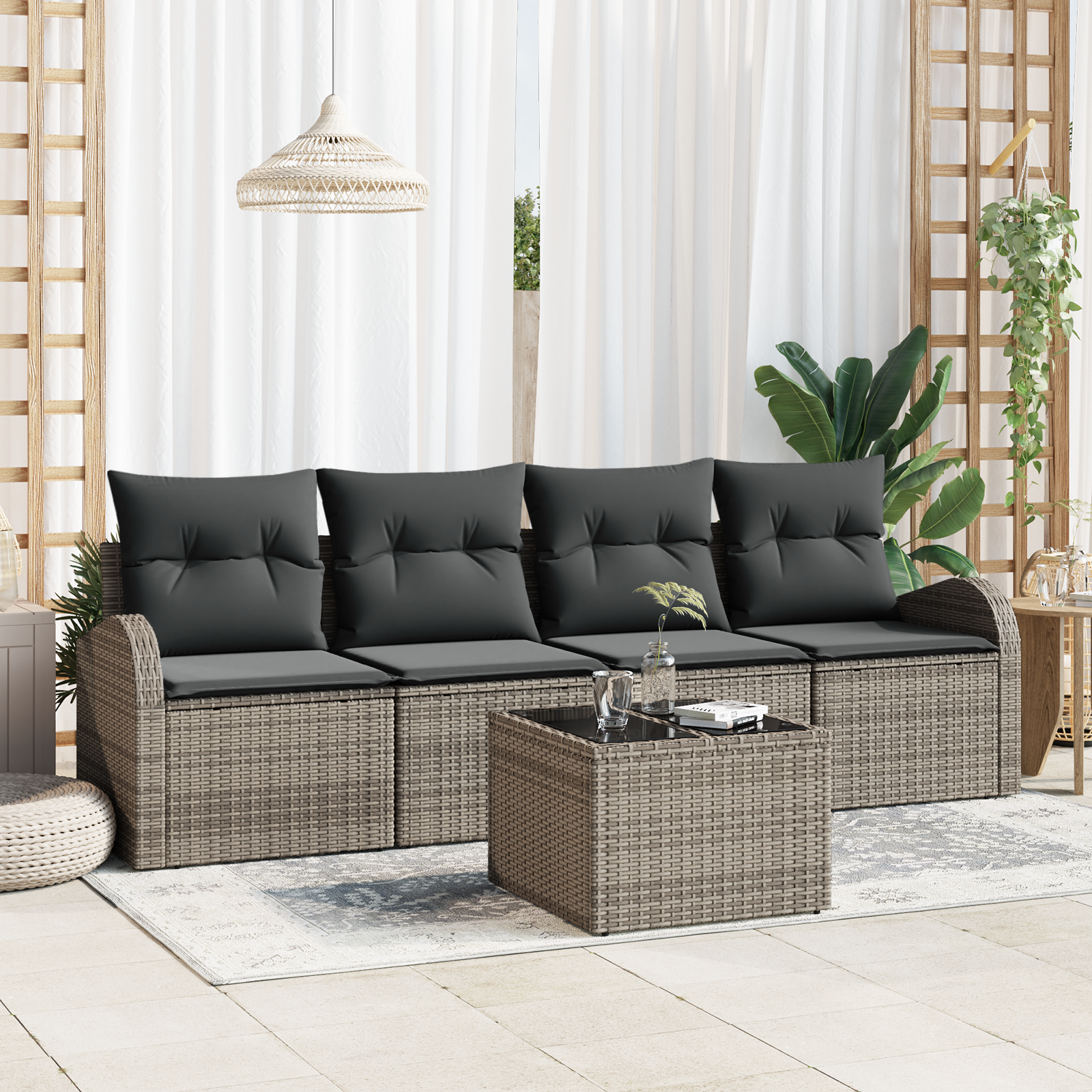 Set de Canapea pentru Grădină 5 Piese cu Perne Gri din Ratan Poly GartenMobel Dekor