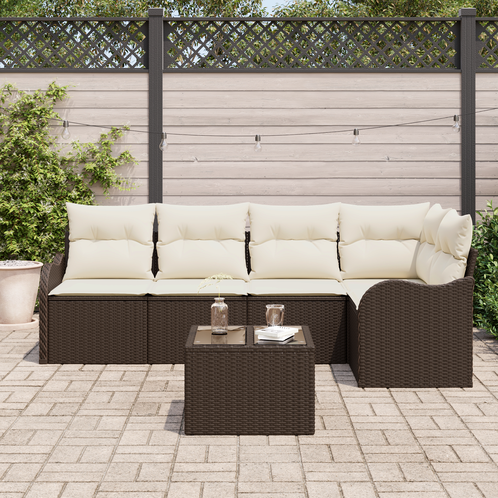 Setul de canapea modulară pentru exterior e totul despre stil și utilitate. E o opțiune super pentru oricine vrea să îmbunătățească spațiile de afară. Culorile maro și crem, plus designul din ratan țesut manual, fac din el un punct de atracție adorabil pentru terase, balcoane sau grădini, creând o atmosferă primitoare pentru relaxare și distracție.