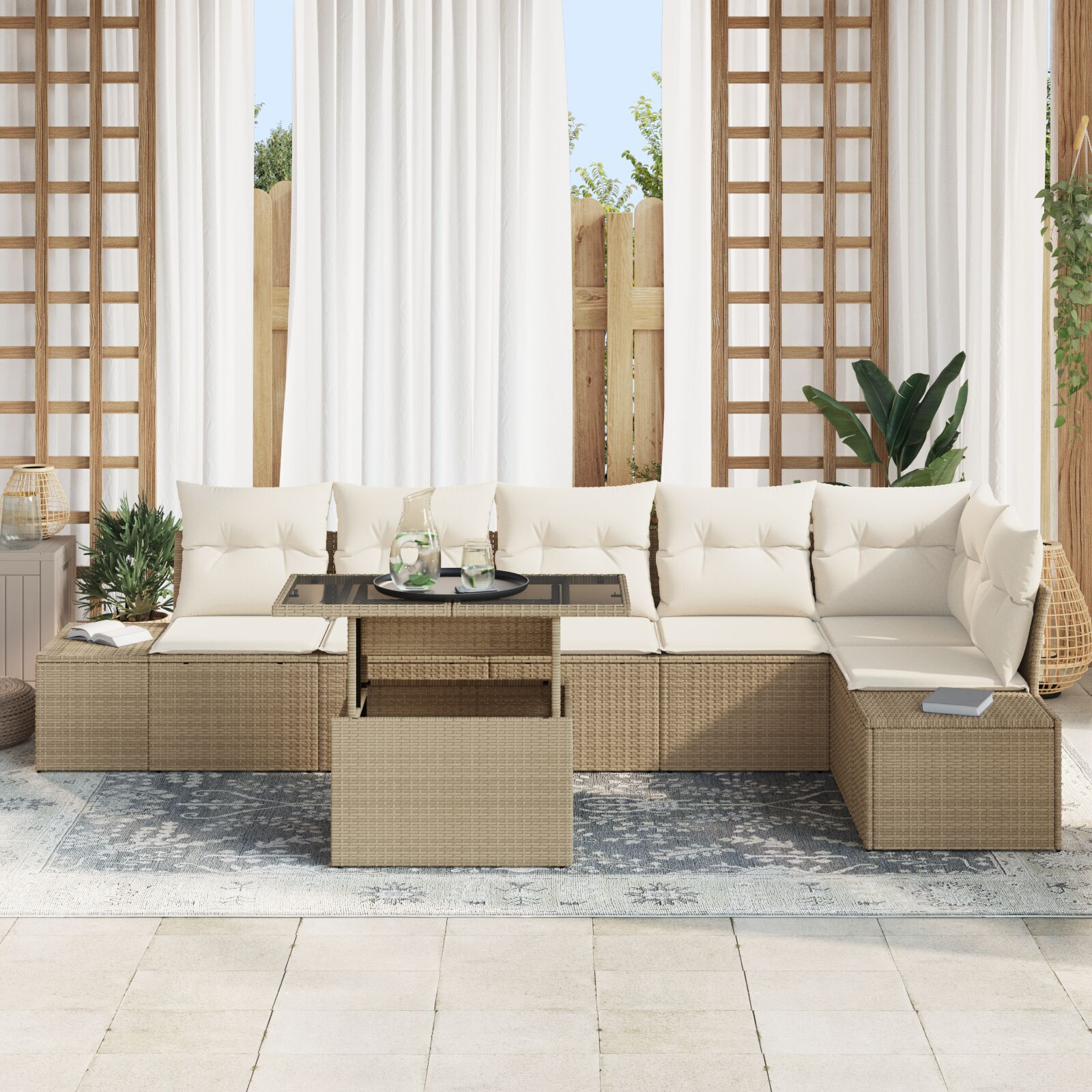 Set de canapea pentru grădină 7 piese cu perne Bej din ratan poliester GartenMobel Dekor