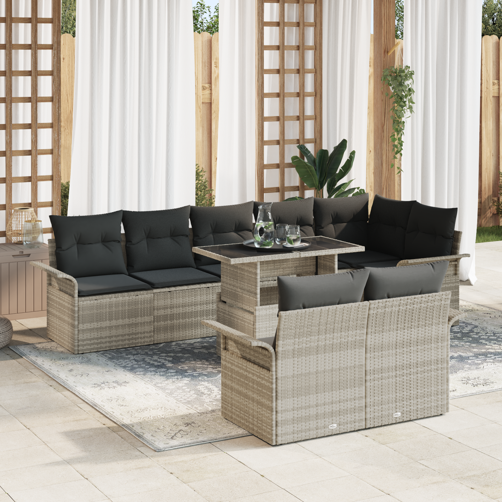 Set de canapea pentru grădină 9 piese cu perne Gri deschis din ratan polimeric GartenMobel Dekor