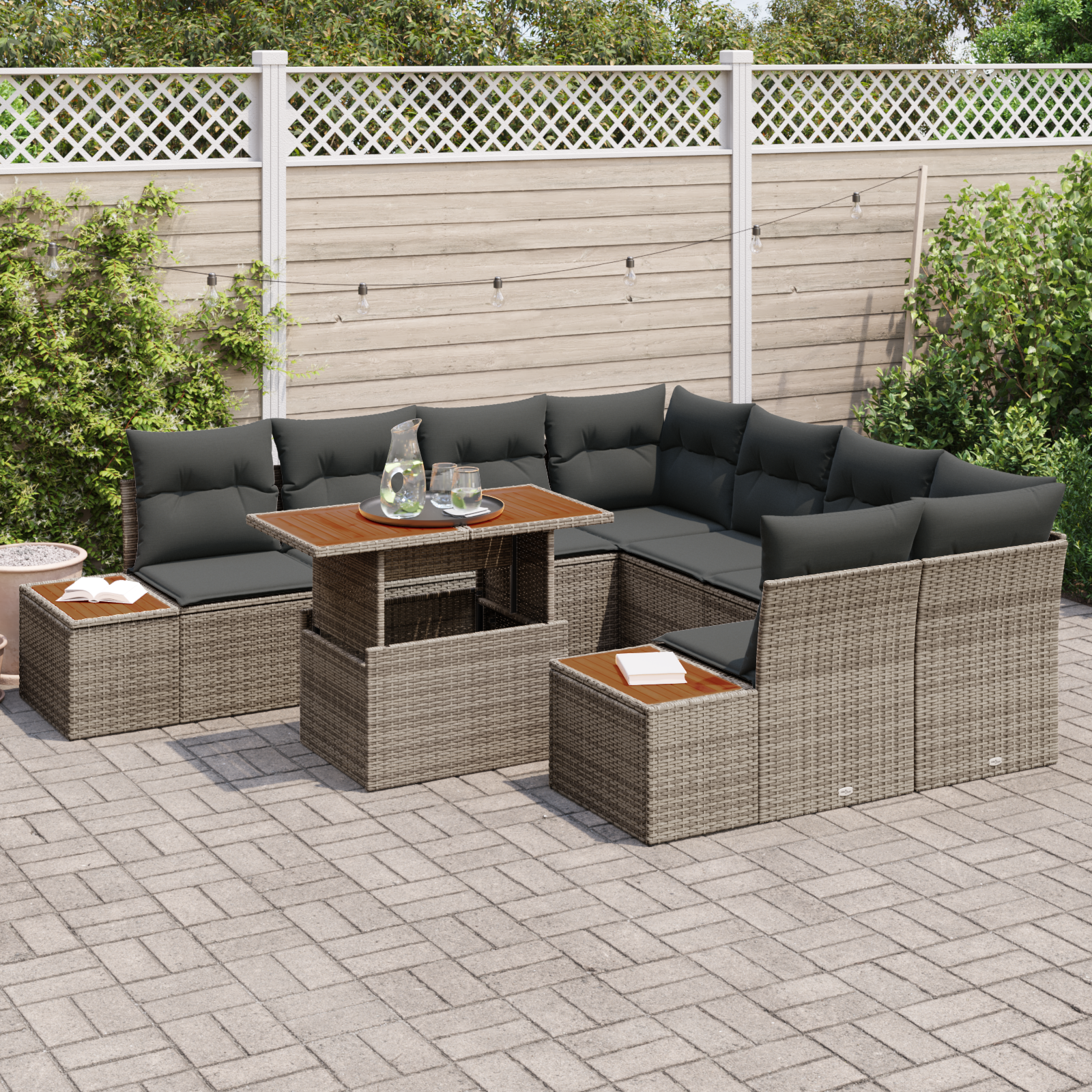 Set de Canapea pentru Grădină 9 Piese cu Perne Gri Poliratan, Canapea pentru Grădină 2 Locuri cu Spațiu de Stocare & Perne Gri Poliratan GartenMobel Dekor
