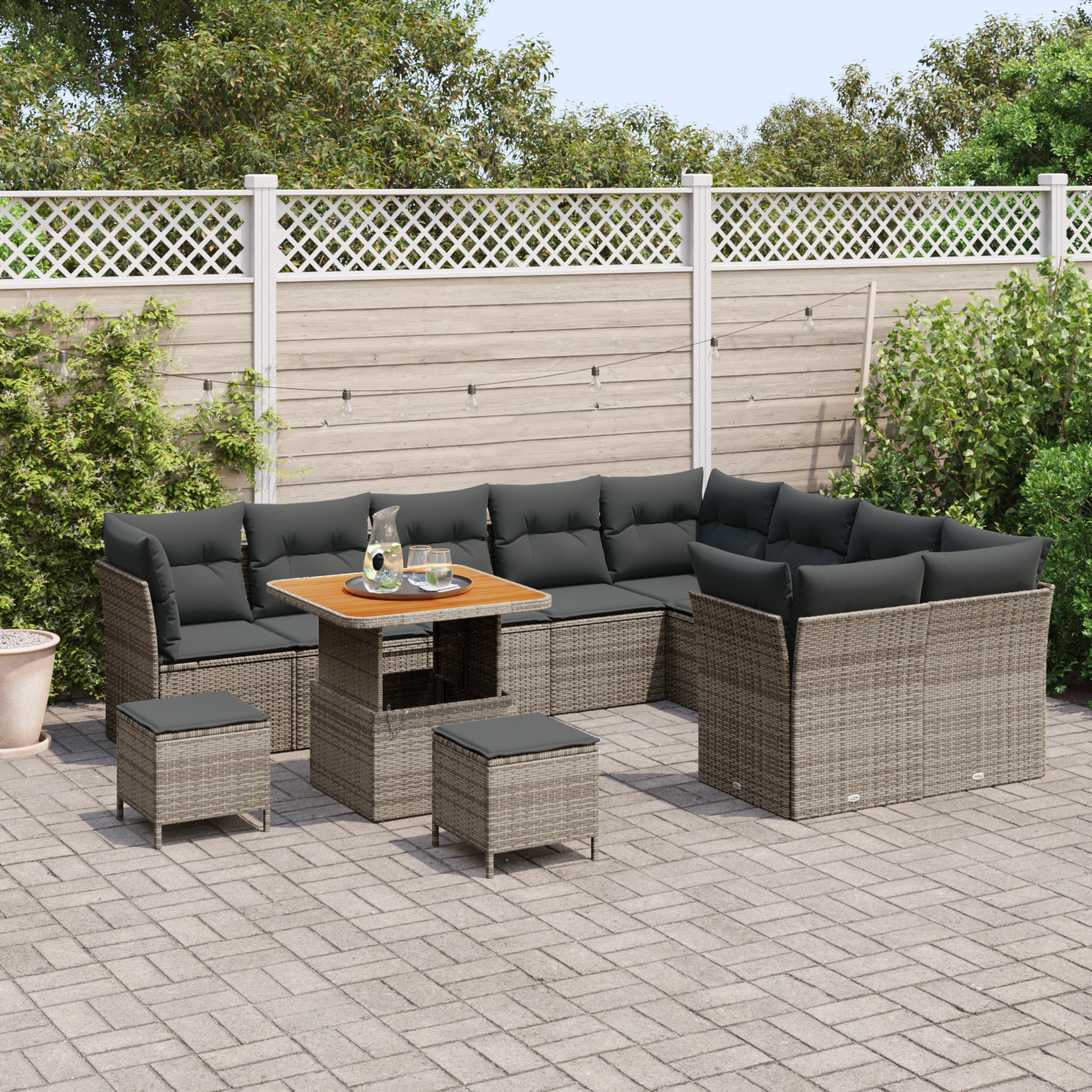 Set de canapea pentru grădină cu 12 piese și perne gri din poliratan acacia, Set de dining pentru grădină cu 3 piese și perne gri din poliratan acacia GartenMobel Dekor
