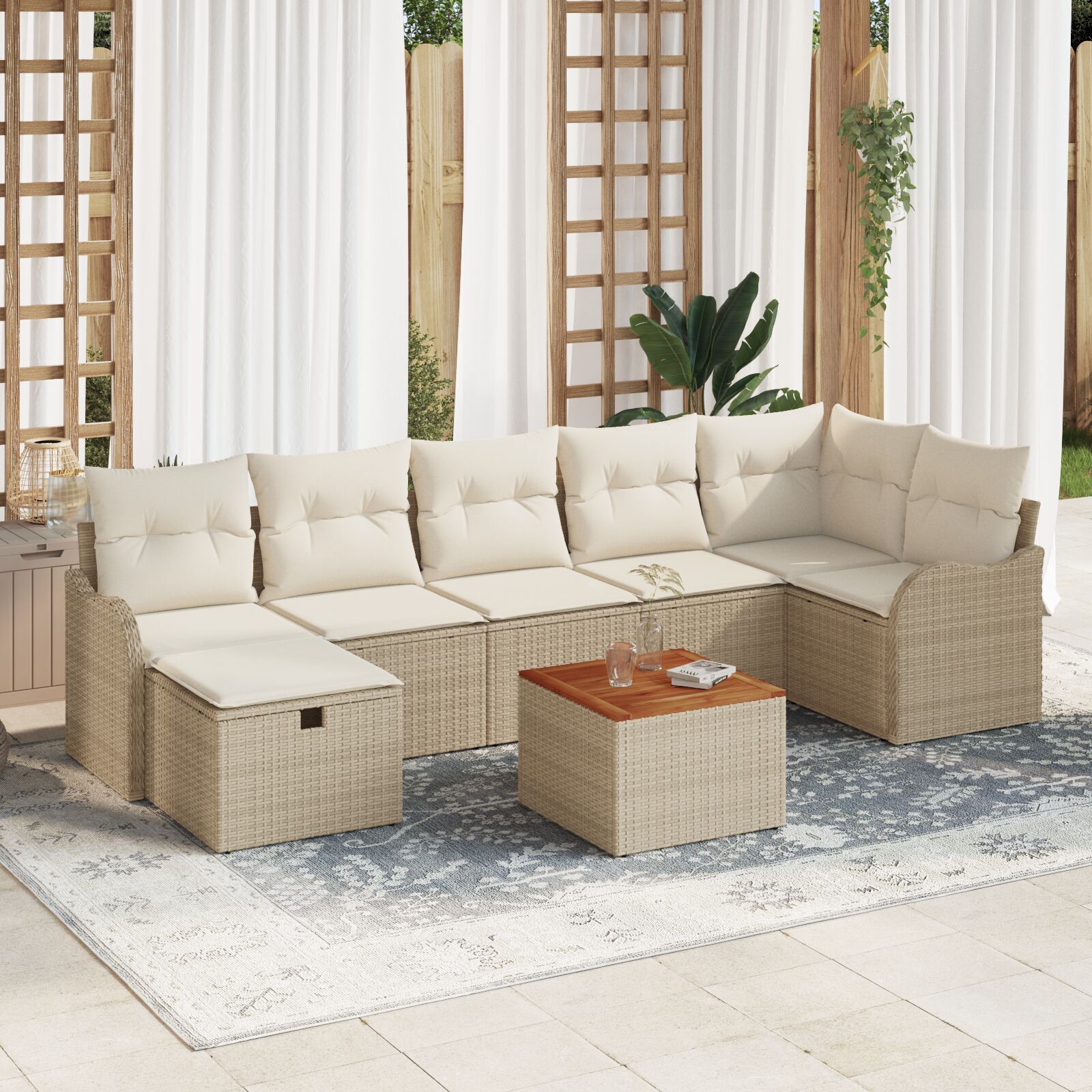 Set de Canapea pentru Grădină cu 8 Piese și Perne Bej din Poliratan, Set de Canapea pentru Grădină cu 2 Locuri și Perne Bej din Poliratan GartenMobel Dekor