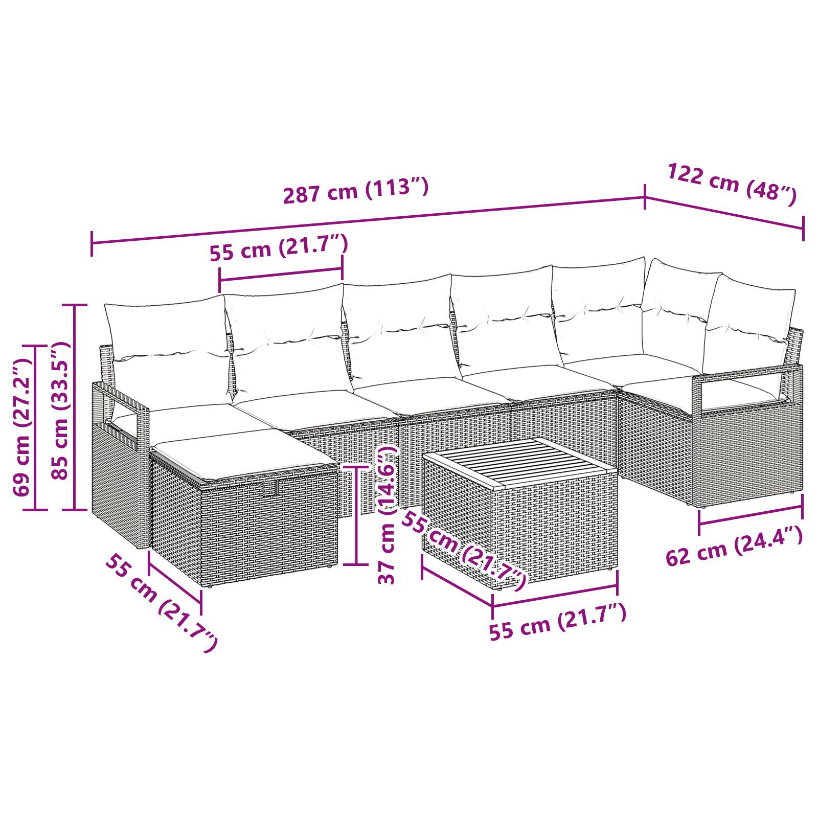 Specificatii Set canapea grădină 8 piese