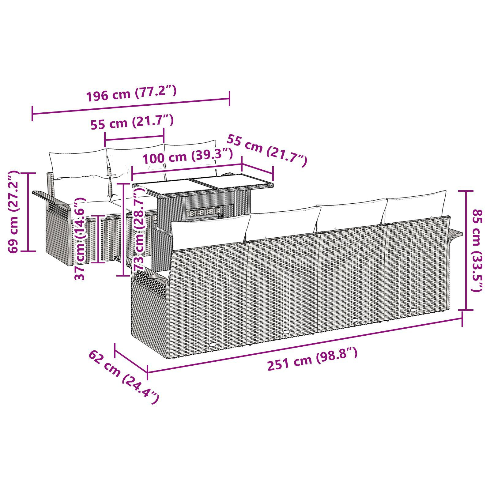 Set de canapea pentru grădină cu 8 piese și perne, maro, ratan poli GartenMobel Dekor