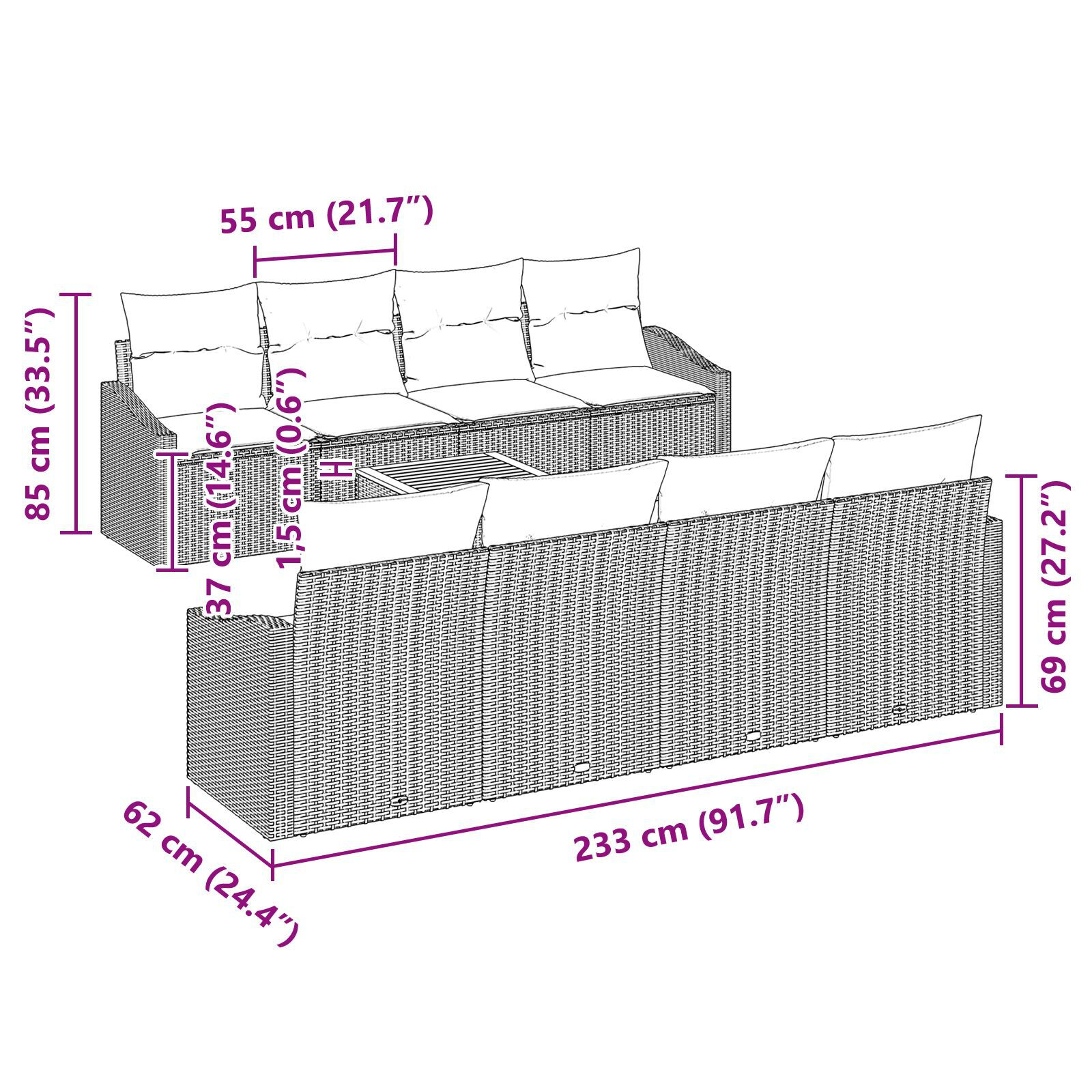 Specificatii Set Canapea Grădină 9 Piese Perne