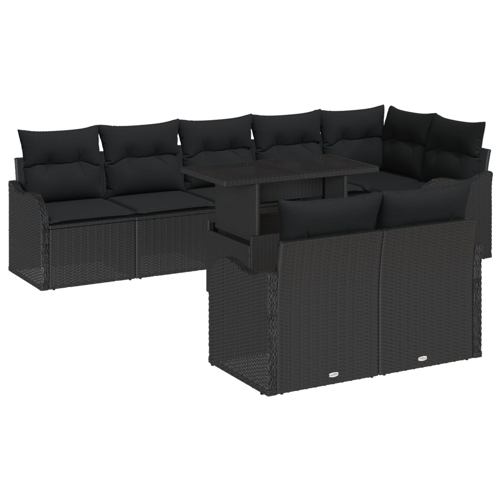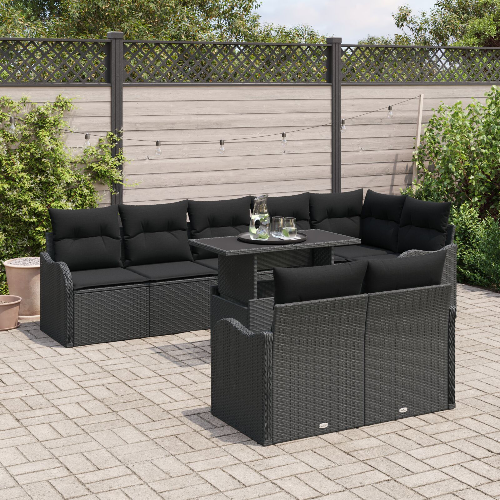 Set de canapea pentru grădină cu 9 piese și perne negre din ratan poli, Canapea pentru grădină cu 2 locuri și perne negre din ratan poli GartenMobel Dekor
