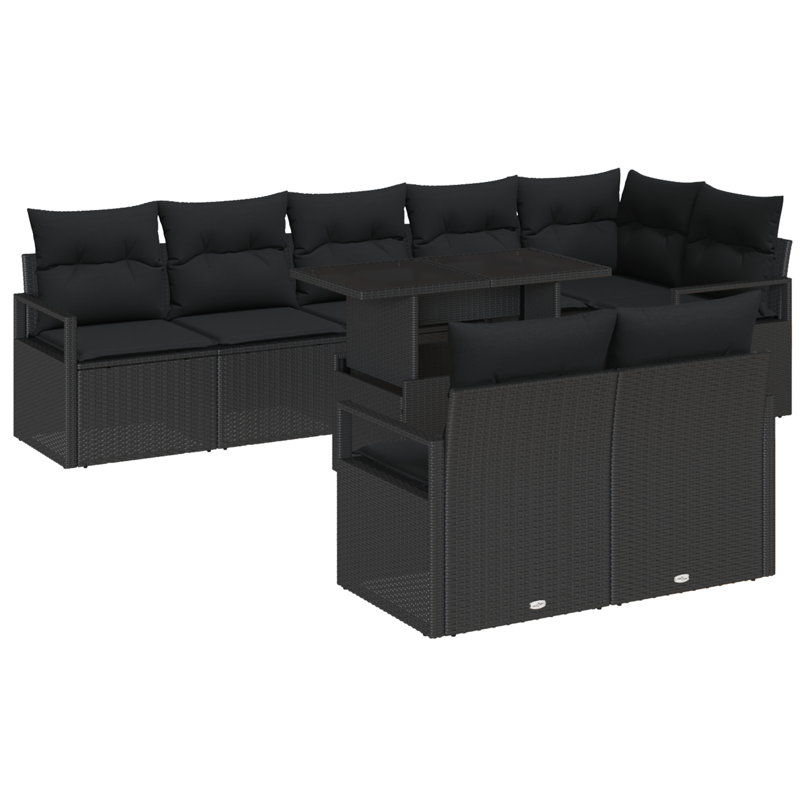 Setul ăsta de Canapea pentru Grădină cu 9 Piese e super pentru locuri afară, perfect pentru socializare sau relaxare. Cu un design modern și elegant, în negru sofisticat, se integrează bine în orice balcon sau spațiu exterior, creând un loc primitor pentru toți.