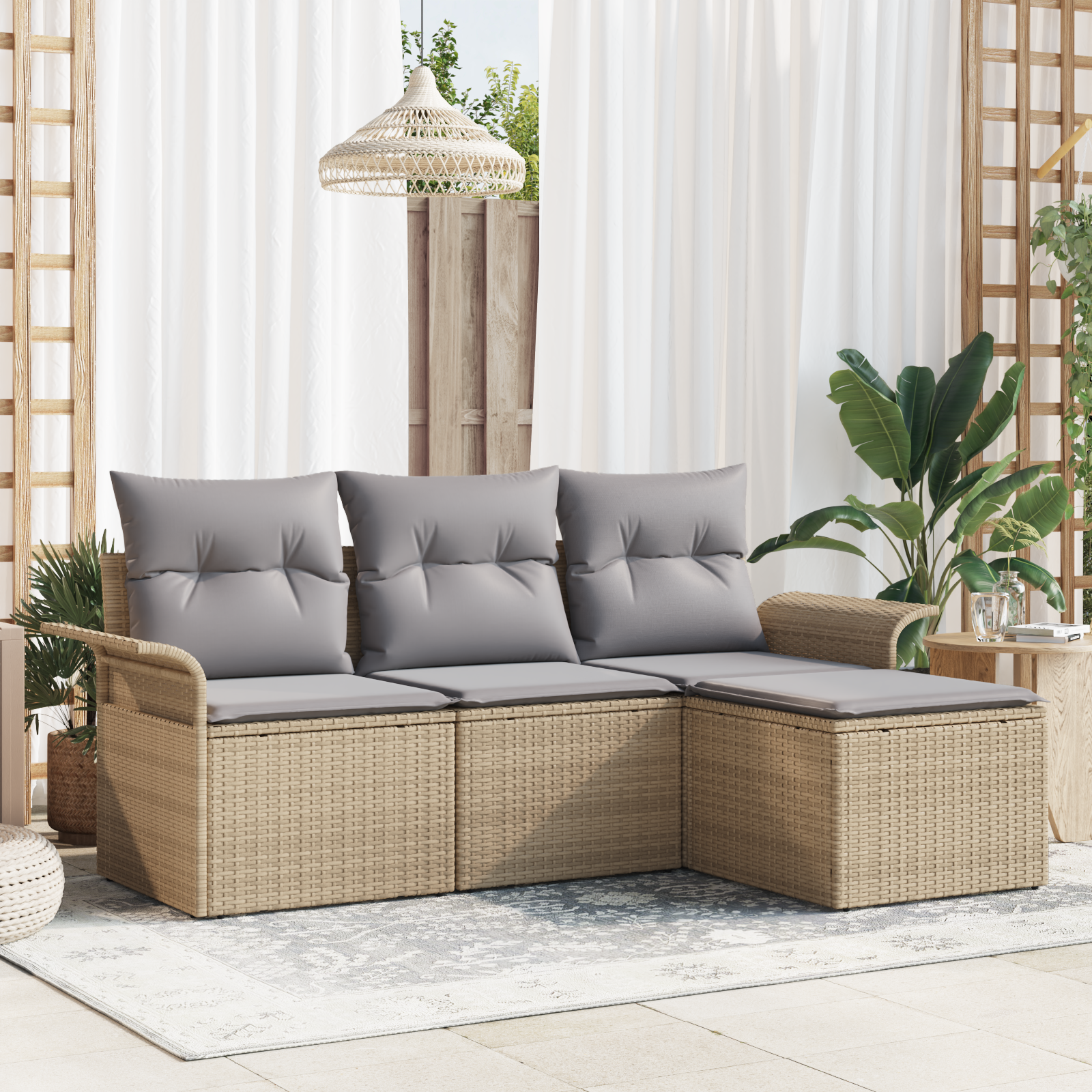 Set de canapea pentru grădină cu perne bej din ratan PE GartenMobel Dekor