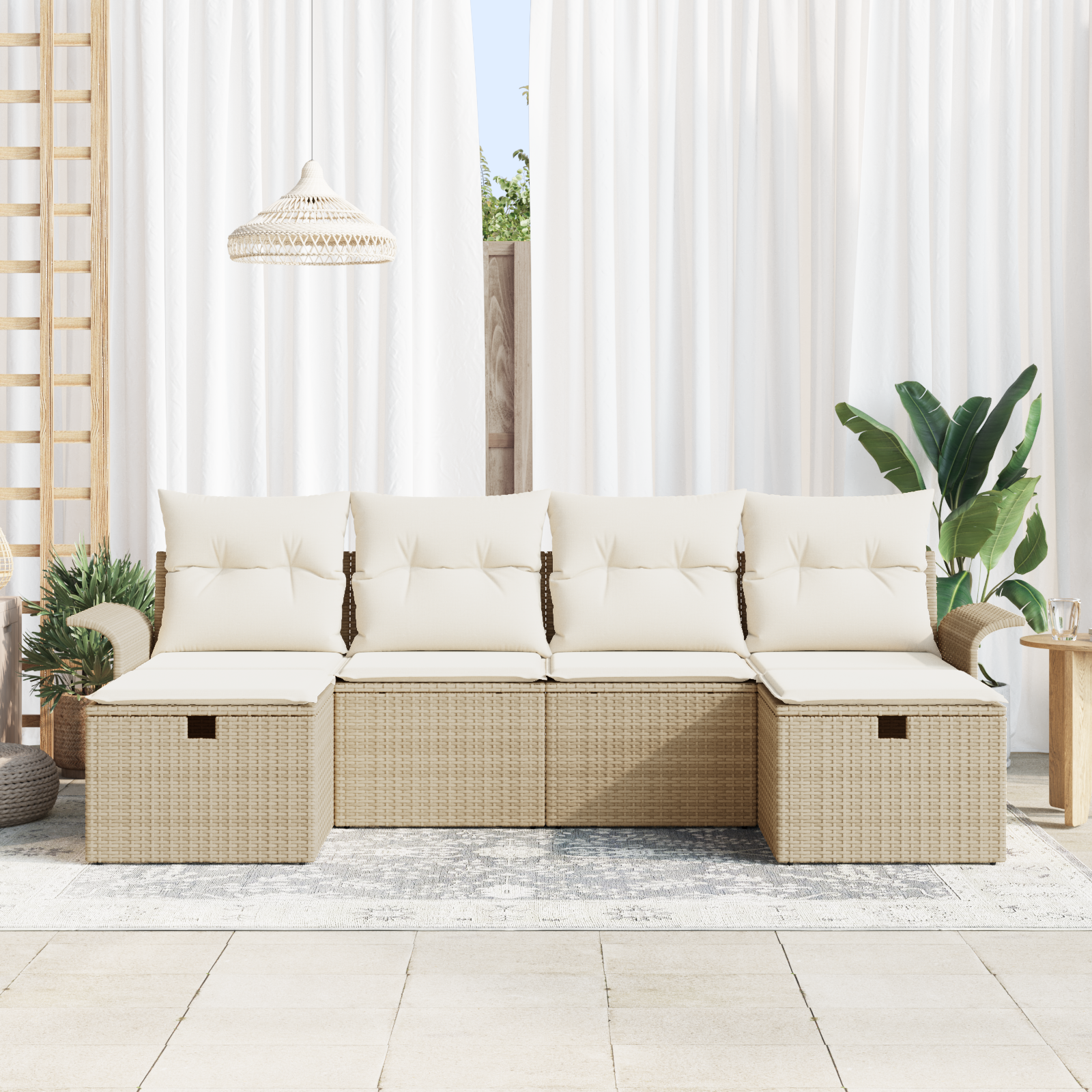 - Aranjament modular: Designul secțional îți permite să aranjezi piesele cum vrei, perfect pentru întâlniri cu prietenii sau relaxare la soare.