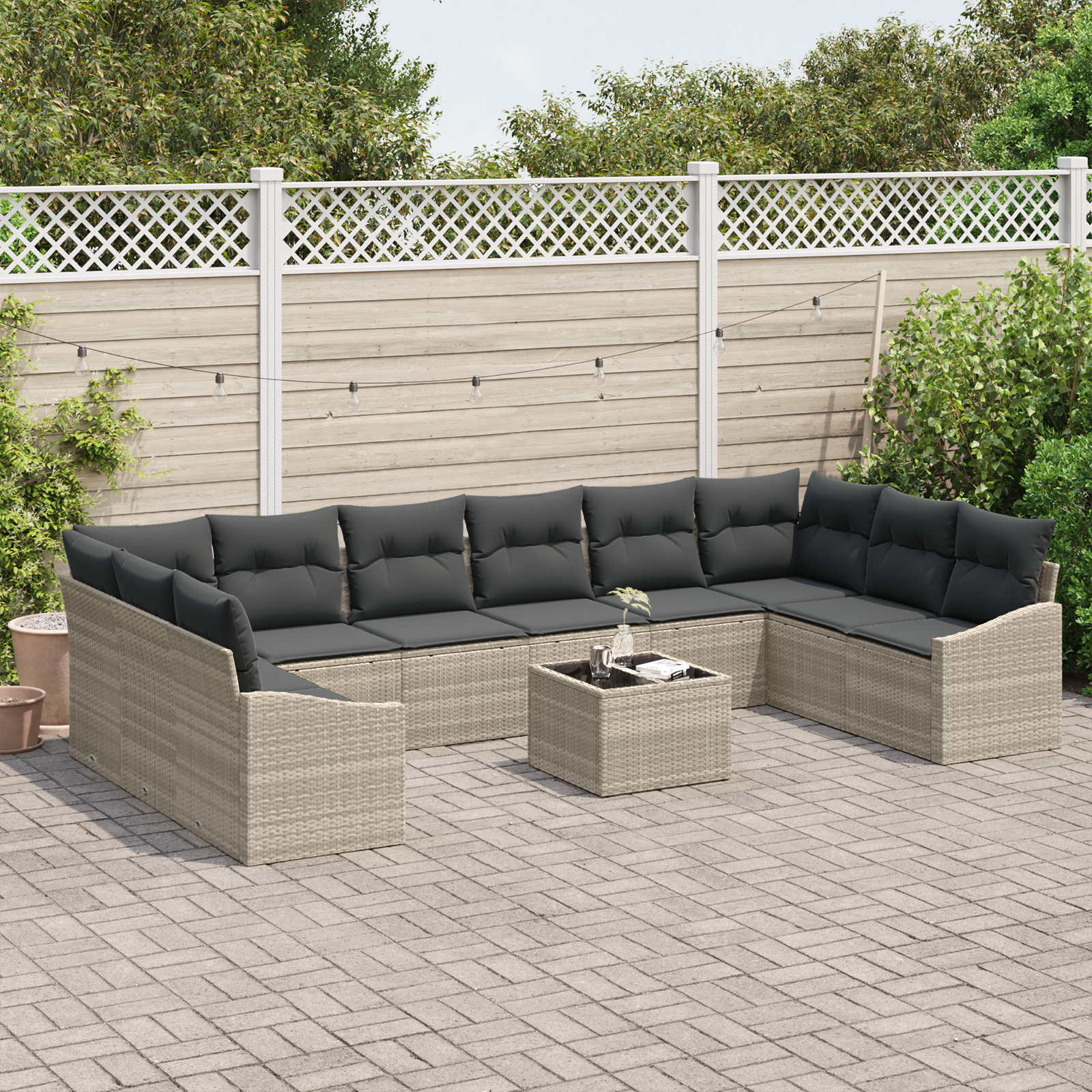 Setul ăsta de canapea secțională pentru exterior combină stilul cu practicitatea. E o adăugare grozavă pentru orice grădină sau terasă. Cu un cadru gri din ratan poli și perne moi, e super confortabilă și aduce o notă elegantă în zona ta exterioară.