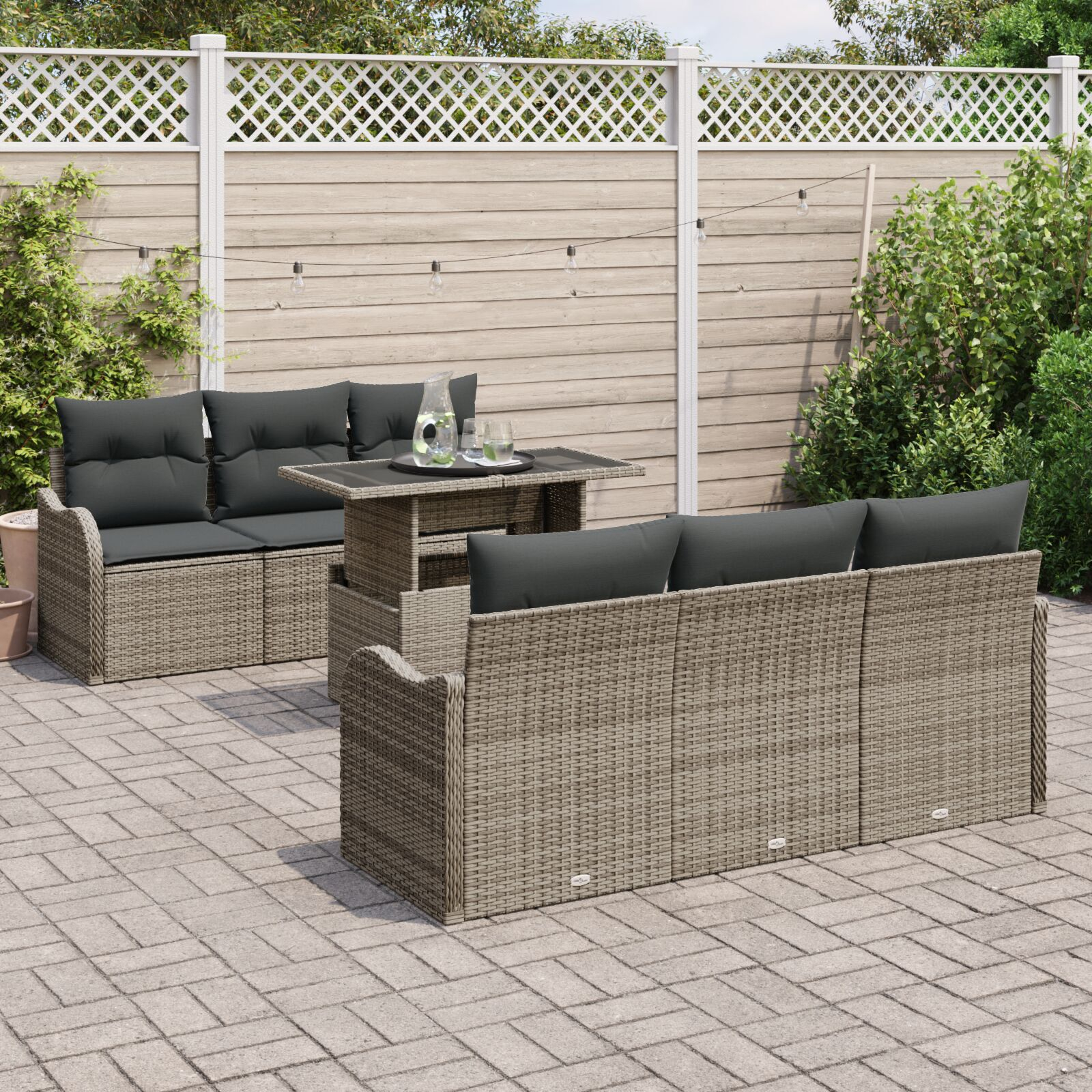 Setul ăsta de canapele pentru grădină combină un look modern cu practicitatea, fiind o alegere super pentru relaxare afară sau pentru a primi oaspeți. Rattanul gri elegant se potrivește perfect cu atmosfera unei terase sau grădini, oferind un loc confortabil unde prietenii și familia se pot bucura de aerul liber.