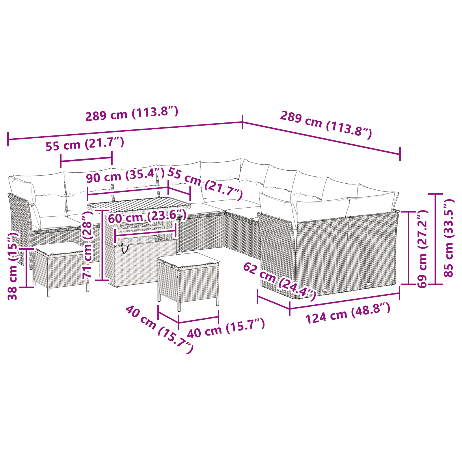 Specificatii Set Canapea Grădină 13 Piese Perne