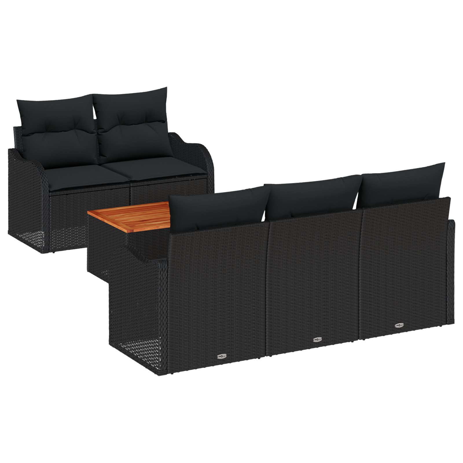 Set de Canapea pentru Grădină de 6 Piese cu Pernuțe Negru Ratan Polimeric Acacia, Canapea de Grădină de 2 Locuri cu Pernuțe Negru Ratan Polimeric GartenMobel Dekor
