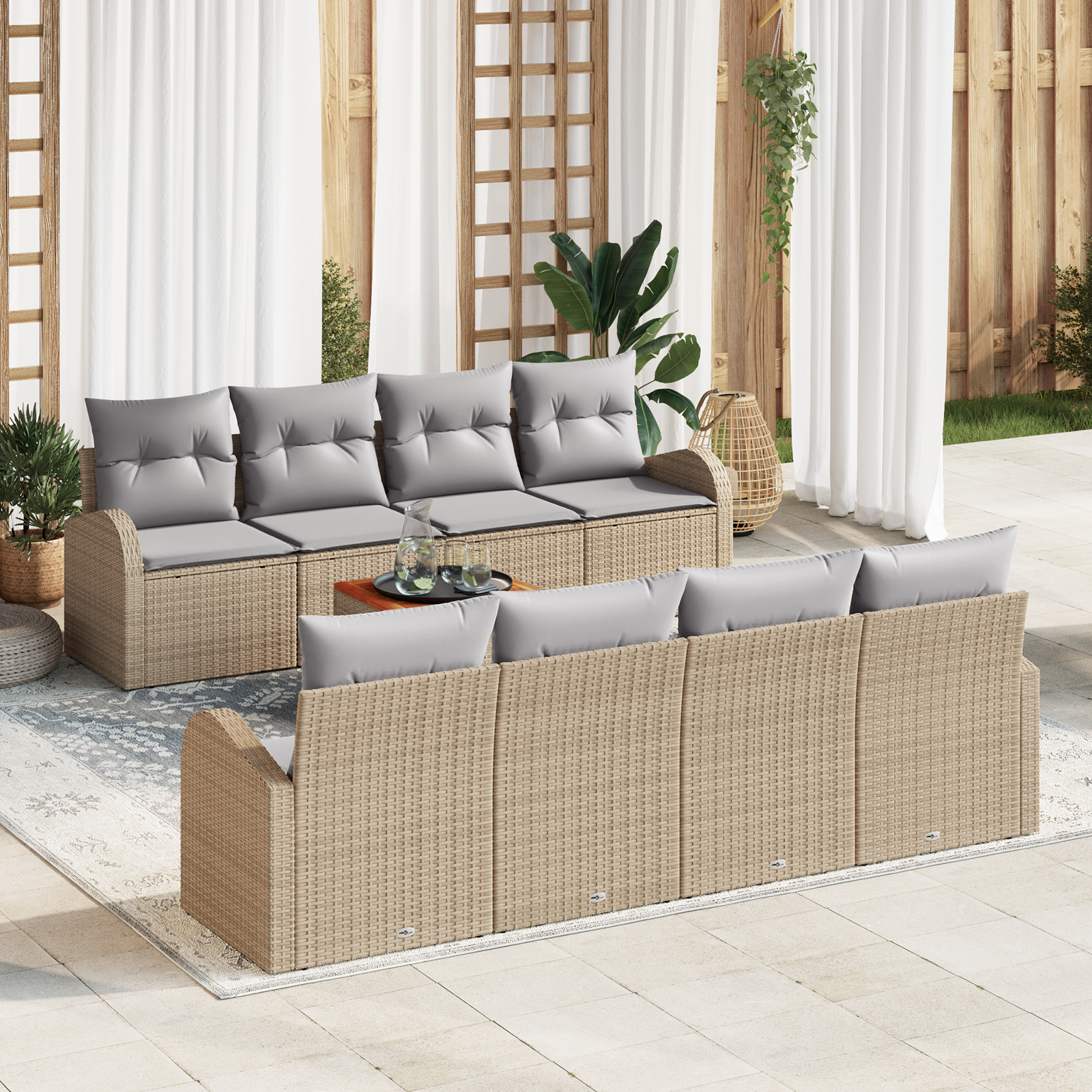 Set de canapea pentru grădină de 9 piese cu perne bej din ratan polimeric, Canapea pentru grădină de 2 persoane cu depozitare și perne bej din ratan polimeric GartenMobel Dekor