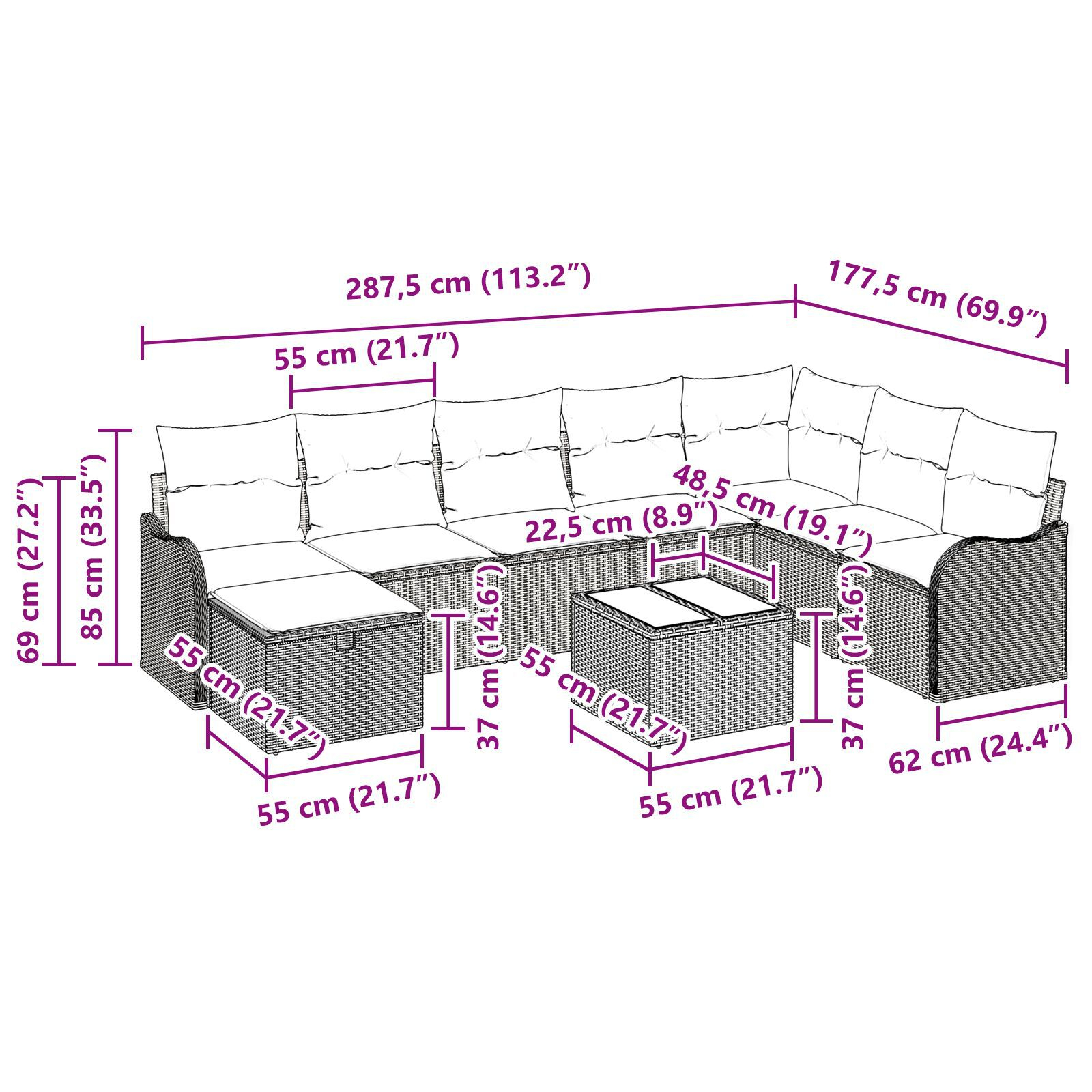 Set de canapea pentru grădină de 9 piese cu perne gri din ratan poliester, Canapea de grădină pentru 2 persoane cu perne gri din ratan poliester GartenMobel Dekor