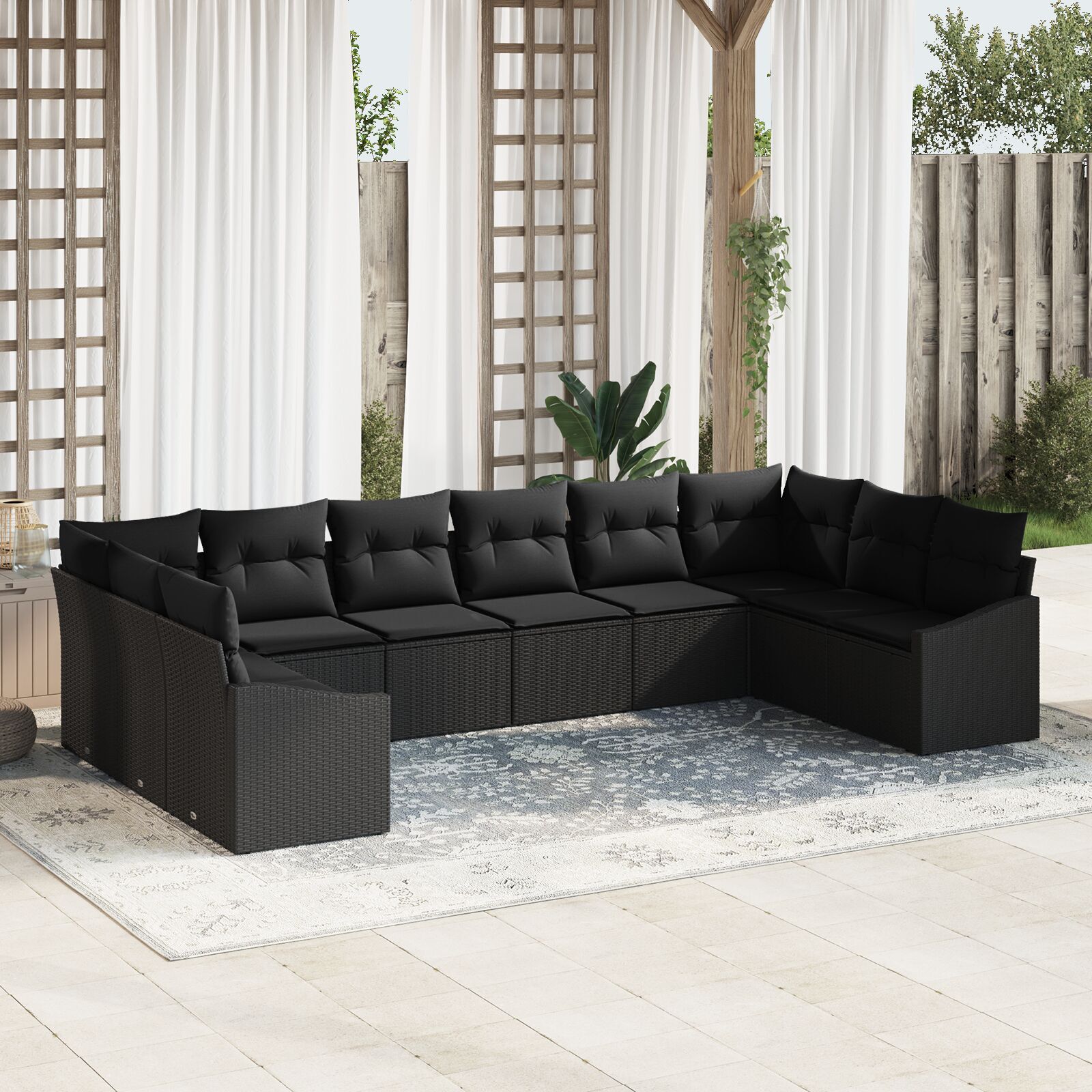 Set de canapea pentru grădină în 10 piese cu perne ratan poliester negru GartenMobel Dekor