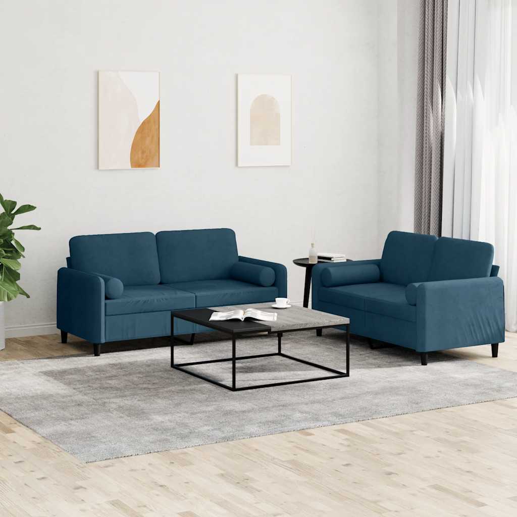 Set de canapele cu perne, 2 piese, albastru, catifea GartenMobel Dekor