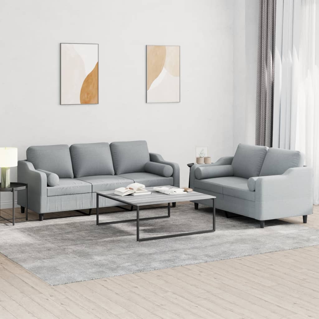 Set de canapele cu perne, 2 piese, gri deschis, material textil GartenMobel Dekor