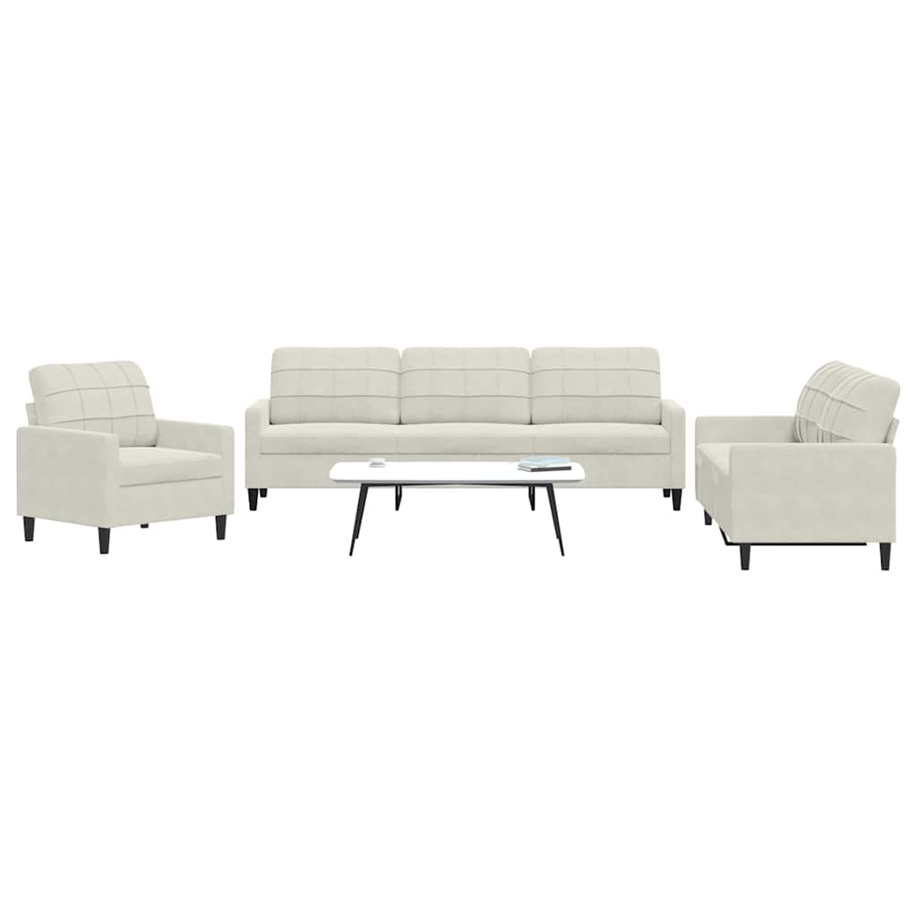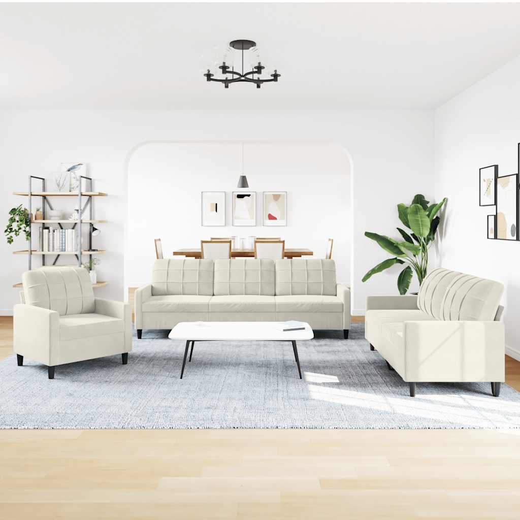 Set de canapele cu perne, 3 piese, crem, catifea GartenMobel Dekor