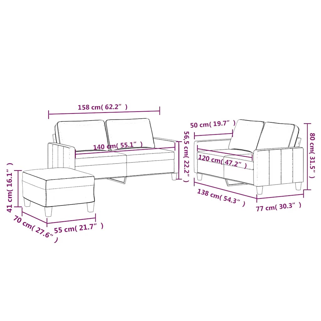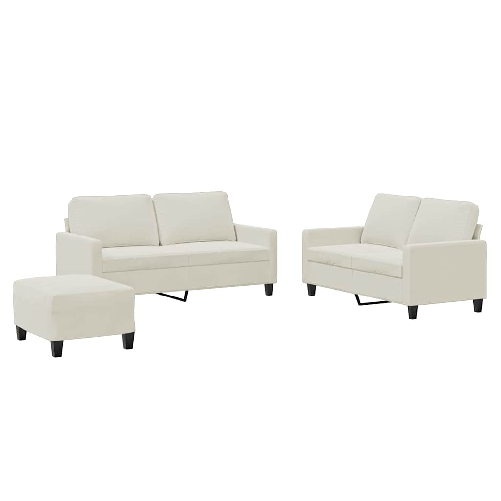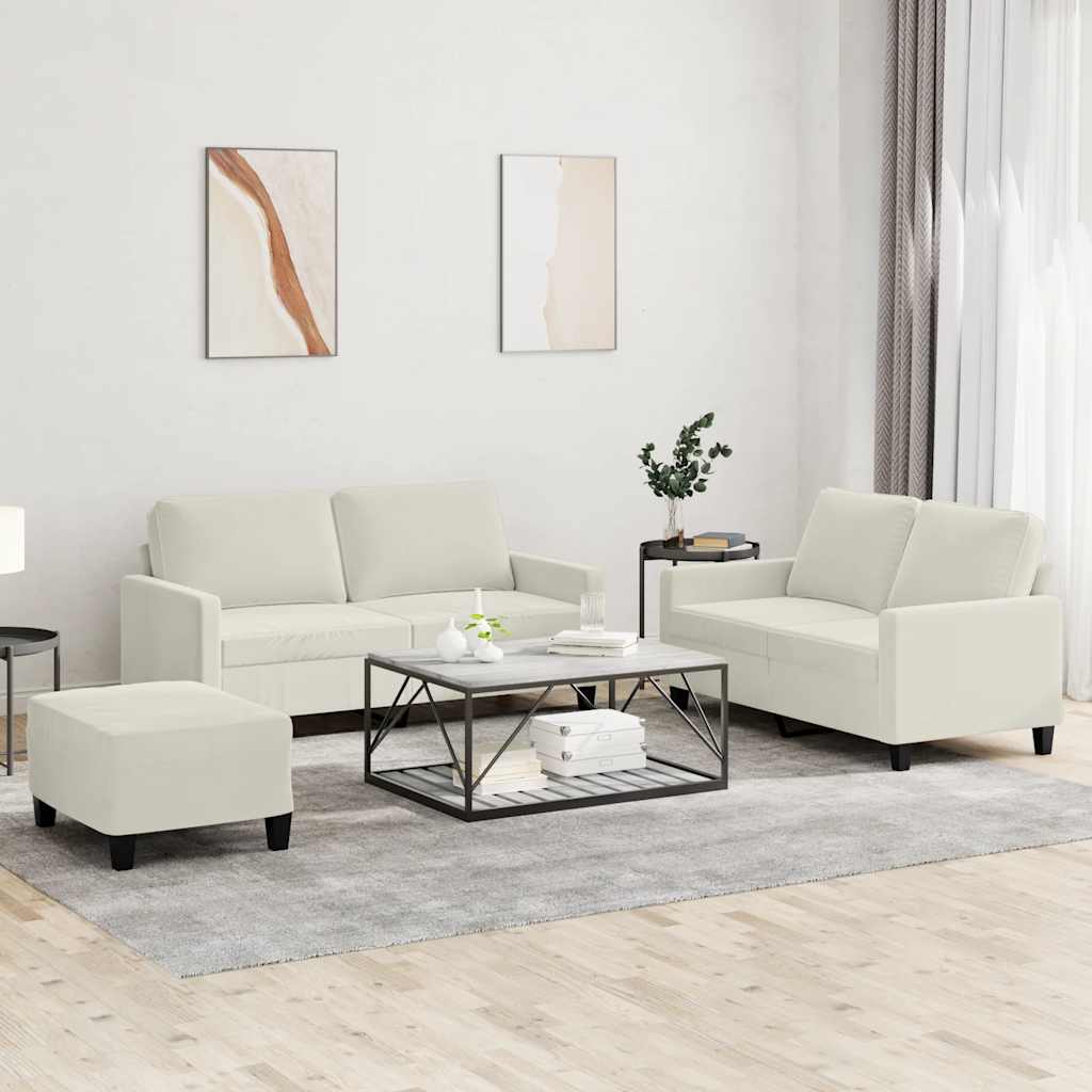 Set de canapele cu perne, 3 piese, crem, catifea GartenMobel Dekor