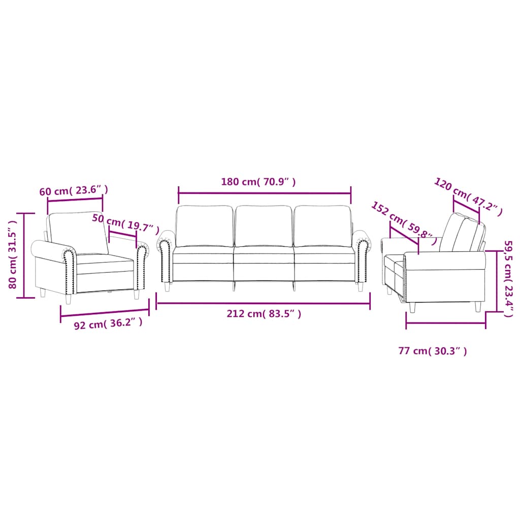 Set de canapele cu perne, 3 piese, maro, catifea GartenMobel Dekor
