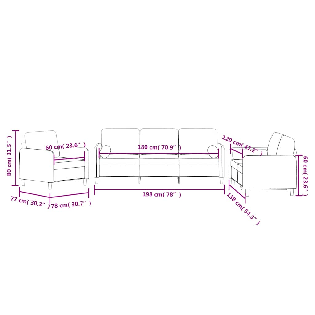 - Dimensiuni totale: 198 x 77 x 80 cm (l x ad. x î)
