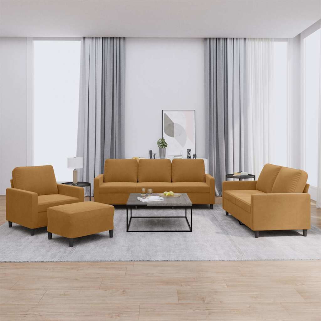 Set de canapele cu perne, 4 piese, maro, catifea GartenMobel Dekor