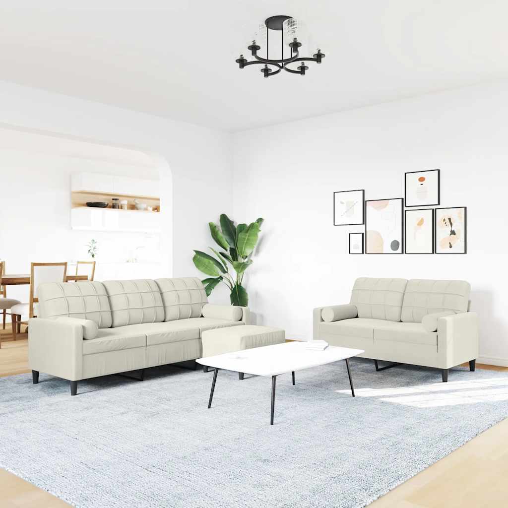 Set de canapele cu perne/rulouri, 3 piese, crem, catifea GartenMobel Dekor
