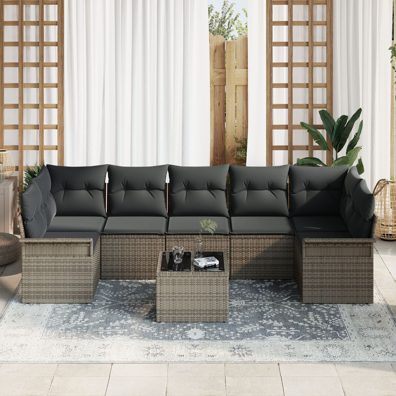 Set de canapele de 8 piese cu perne Gri Poliratan GartenMobel Dekor